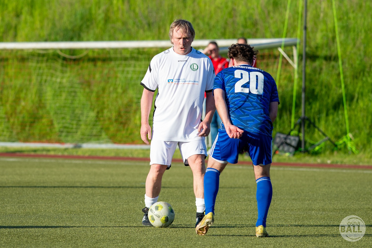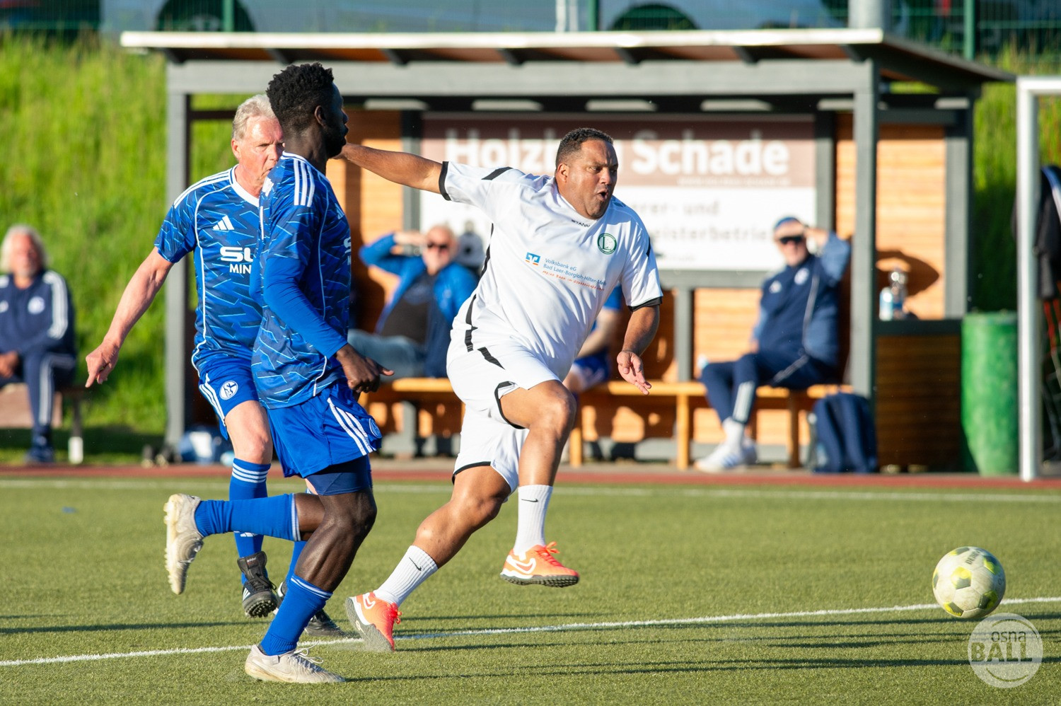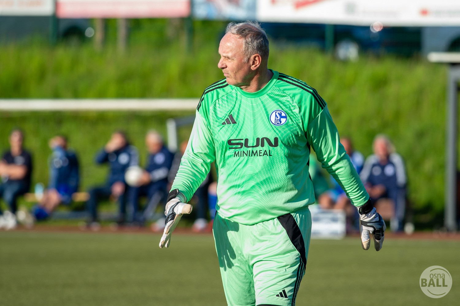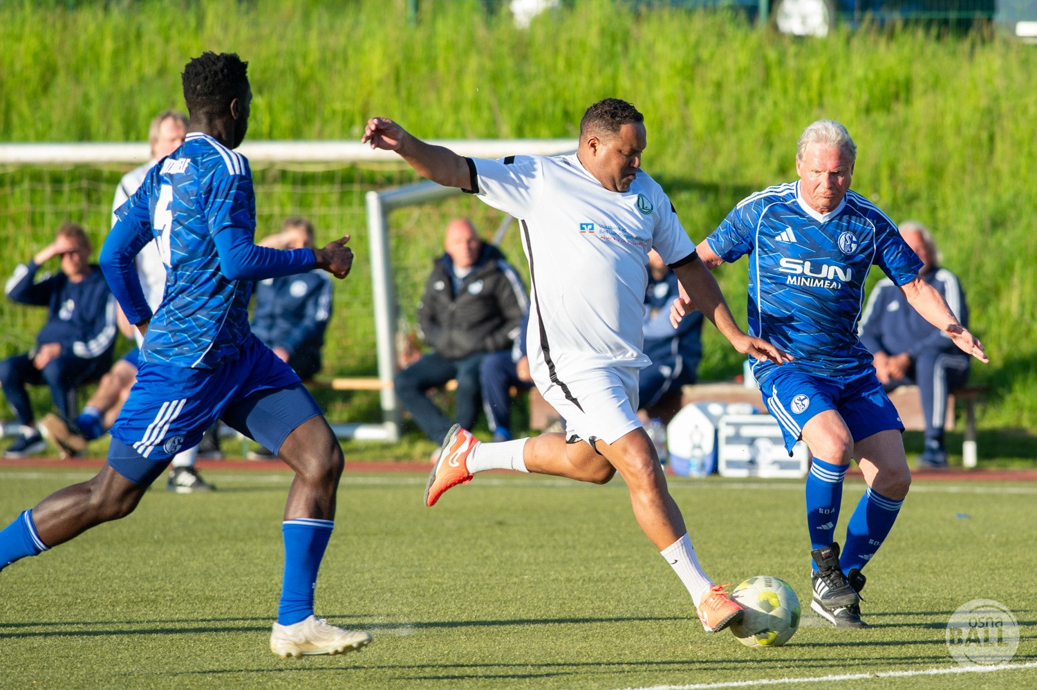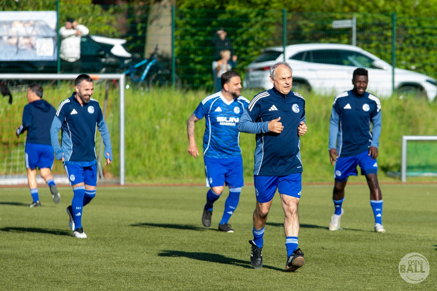 Rund 800 Fußball begeisterte kamen zum vom TuS Hilter und dem Carpesol ausgerichteten Legenden Cup und wurden nicht enttäuscht. Zwar gab es den ein oder anderen Zuschauer der mit einem 1:15 für die Schalker Traditionsmannschaft gerechnet hat, doch das vor allem die Osnabrück Auswahl bzw. Legenden sehr wohl einen guten Ball spielen können, zeigten sie über 2x 40 Minuten. Ein besonderes Augenmerk hatten die Fans auf Ailton geworfen. Was er noch heute am Ball kann, da würden manch gestandene Amateur Fußballer mit der Zunge schnalzen. Aber auch der Weiße Brasilianer in Person von Ansgar Brinkmann zog die Blicke auf sich. Zwar war ein Vollsprint mehr drin, aber einige gute Zweikämpfe und ein hart verwandelter Elfmeter zu 1:1 Ausgleichstreffer. Diesen Elfmeter hatte im übrigen niemand geringeres als Tommy Reichenberger rausgeholt. In klassischer Stürmer Manier wurde er im 16er zu Fall gebracht und der Gegner stritt das Foul nicht ab also Elfmeter. Nach dem Seitenwechsel hatte dann Ailton die zweite Luft und tanzte den ein oder anderen Schalker aus. Sehenswert dabei, sein Führungstreffer zum 2:1. Schalke versuchte in der Folge weiter den Ausgleich zu erzielen, wurde aber immer wieder durch die gut stehende Abwehr der Osnabrück Legenden, gestoppt. Allen voran in Big Nick Manier, niemand geringeres als Tobias Nickenig. Gut 10 Minuten vor dem Ende fiel noch der 3:1 Siegtreffer.