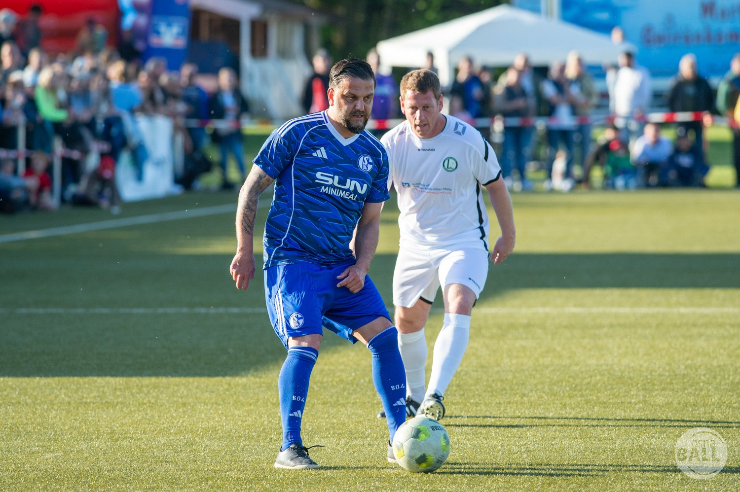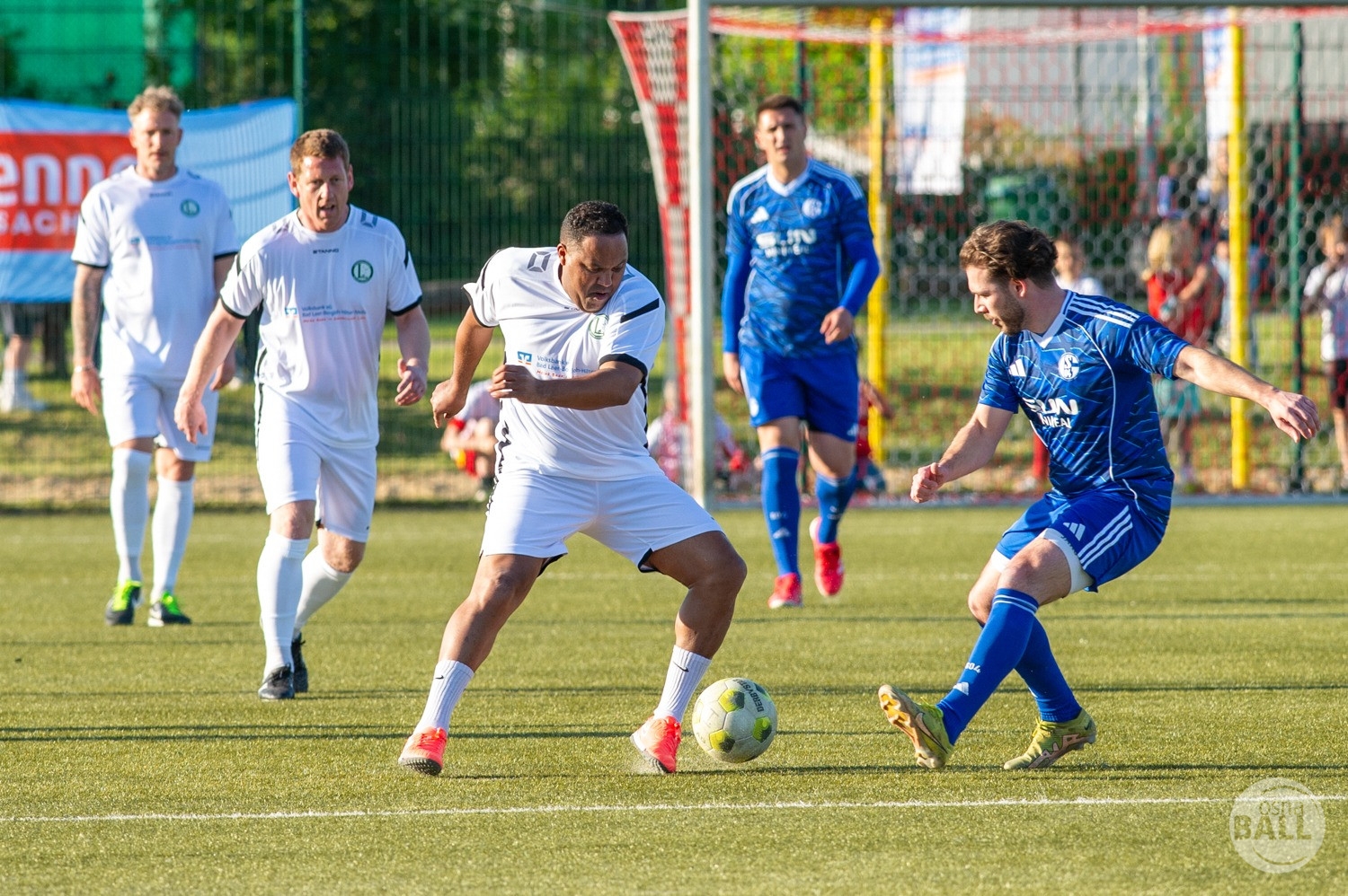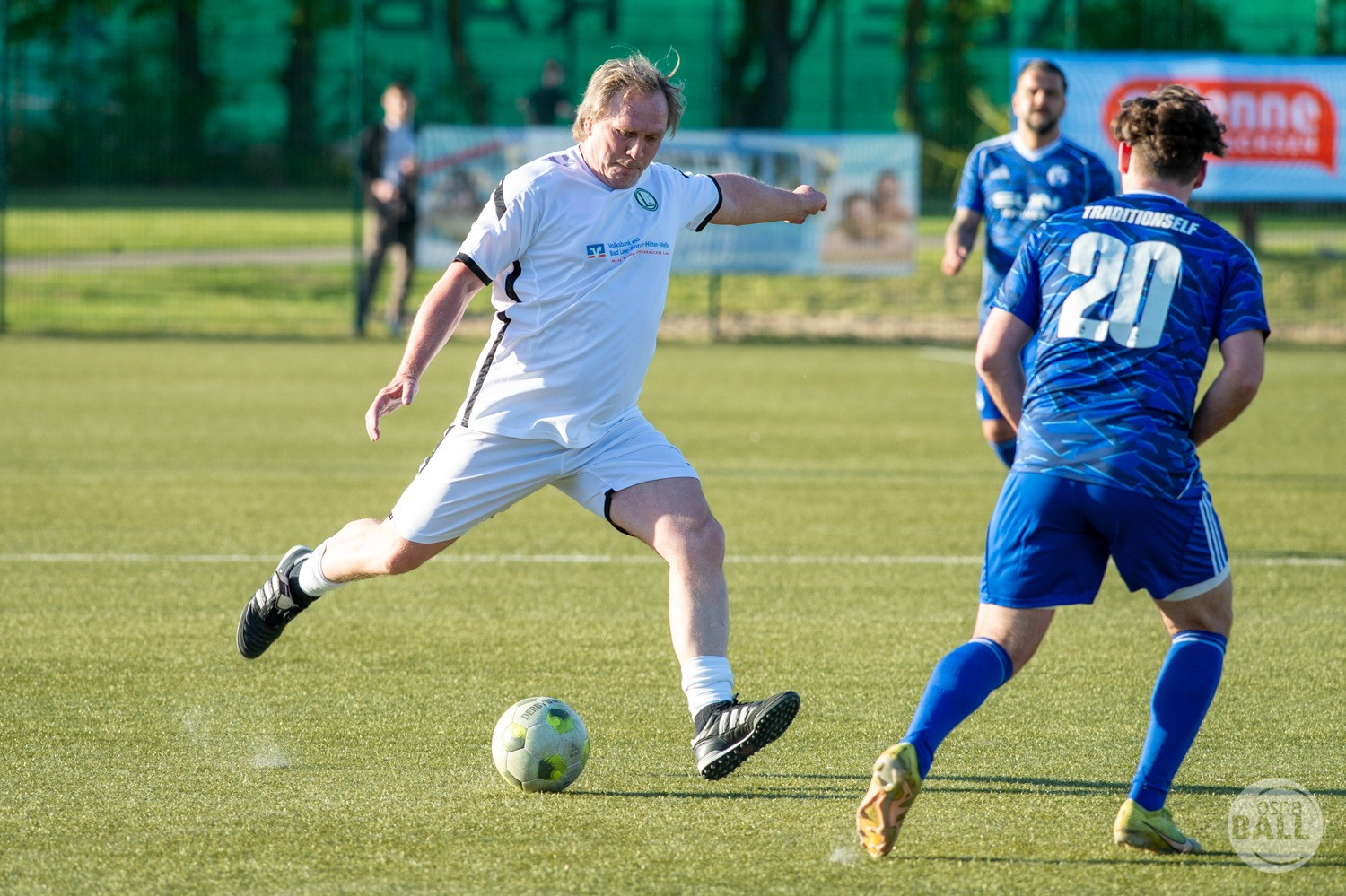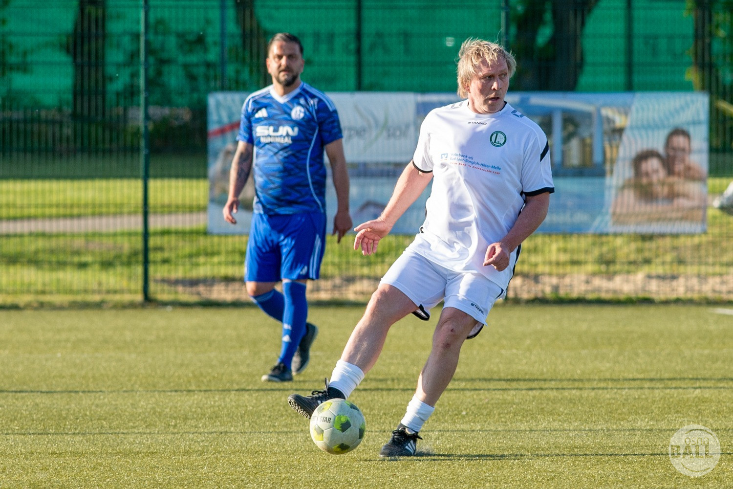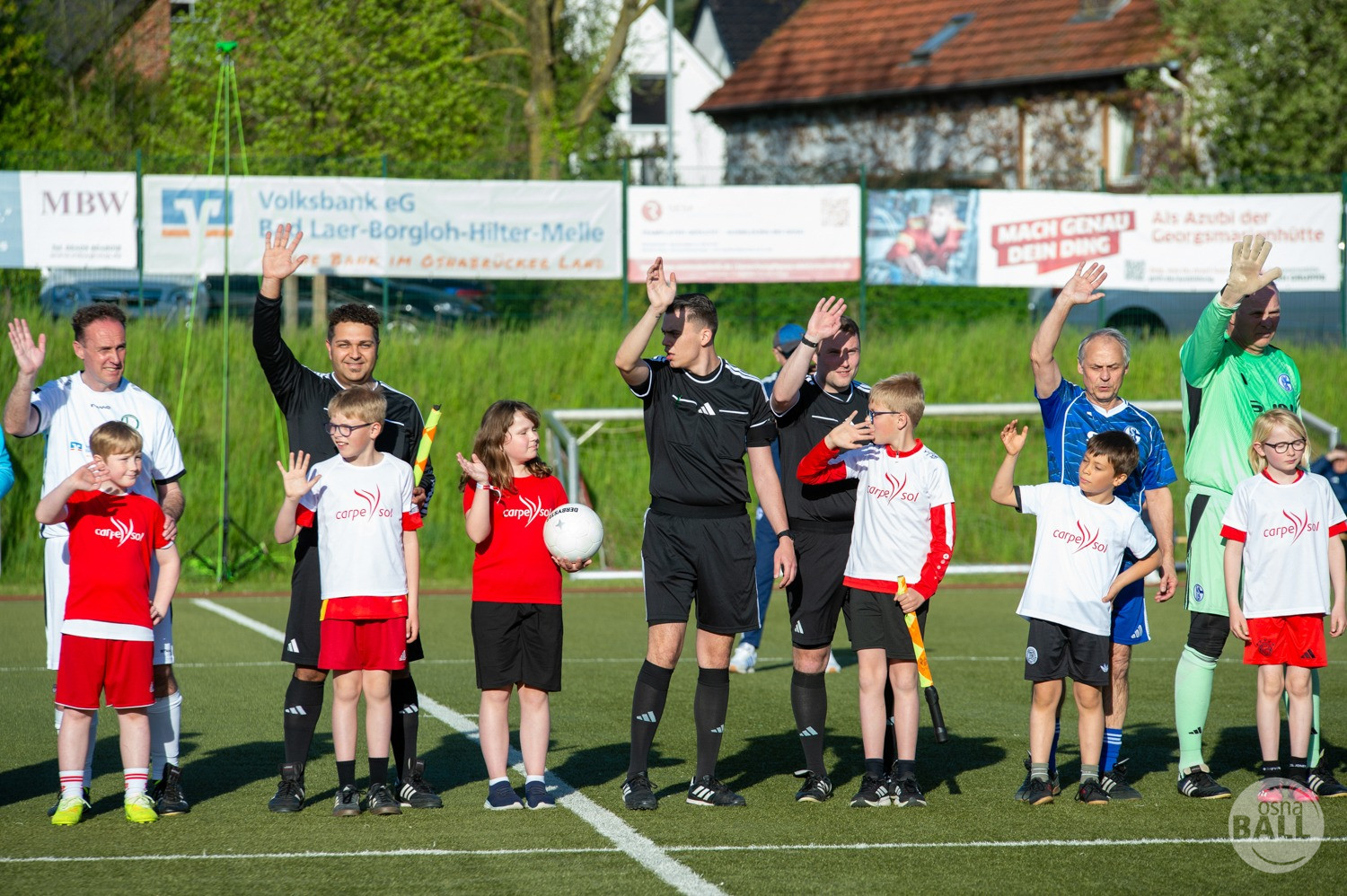 Rund 800 Fußball begeisterte kamen zum vom TuS Hilter und dem Carpesol ausgerichteten Legenden Cup und wurden nicht enttäuscht. Zwar gab es den ein oder anderen Zuschauer der mit einem 1:15 für die Schalker Traditionsmannschaft gerechnet hat, doch das vor allem die Osnabrück Auswahl bzw. Legenden sehr wohl einen guten Ball spielen können, zeigten sie über 2x 40 Minuten. Ein besonderes Augenmerk hatten die Fans auf Ailton geworfen. Was er noch heute am Ball kann, da würden manch gestandene Amateur Fußballer mit der Zunge schnalzen. Aber auch der Weiße Brasilianer in Person von Ansgar Brinkmann zog die Blicke auf sich. Zwar war ein Vollsprint mehr drin, aber einige gute Zweikämpfe und ein hart verwandelter Elfmeter zu 1:1 Ausgleichstreffer. Diesen Elfmeter hatte im übrigen niemand geringeres als Tommy Reichenberger rausgeholt. In klassischer Stürmer Manier wurde er im 16er zu Fall gebracht und der Gegner stritt das Foul nicht ab also Elfmeter. Nach dem Seitenwechsel hatte dann Ailton die zweite Luft und tanzte den ein oder anderen Schalker aus. Sehenswert dabei, sein Führungstreffer zum 2:1. Schalke versuchte in der Folge weiter den Ausgleich zu erzielen, wurde aber immer wieder durch die gut stehende Abwehr der Osnabrück Legenden, gestoppt. Allen voran in Big Nick Manier, niemand geringeres als Tobias Nickenig. Gut 10 Minuten vor dem Ende fiel noch der 3:1 Siegtreffer.