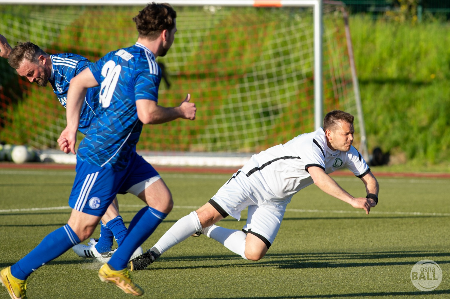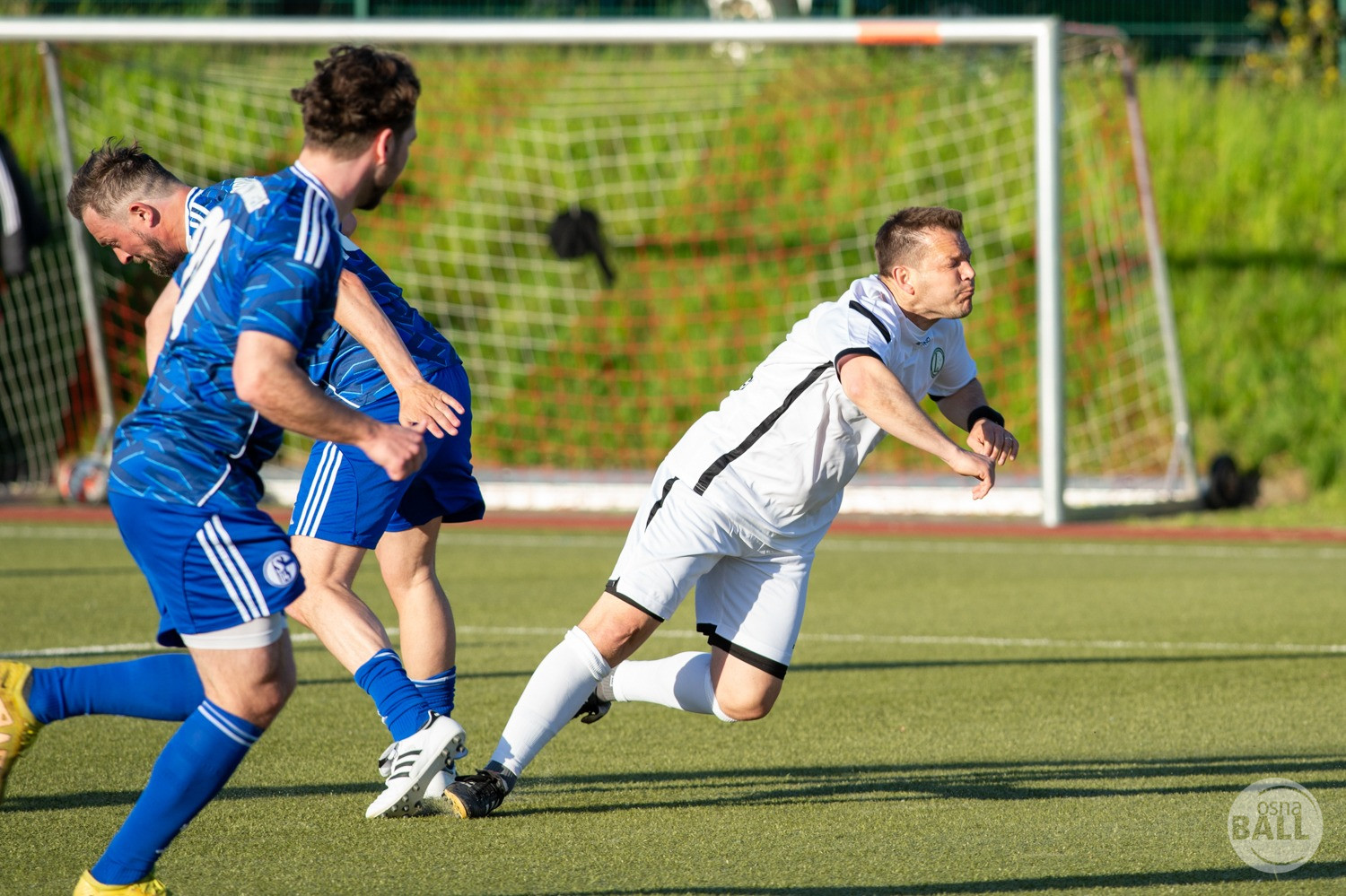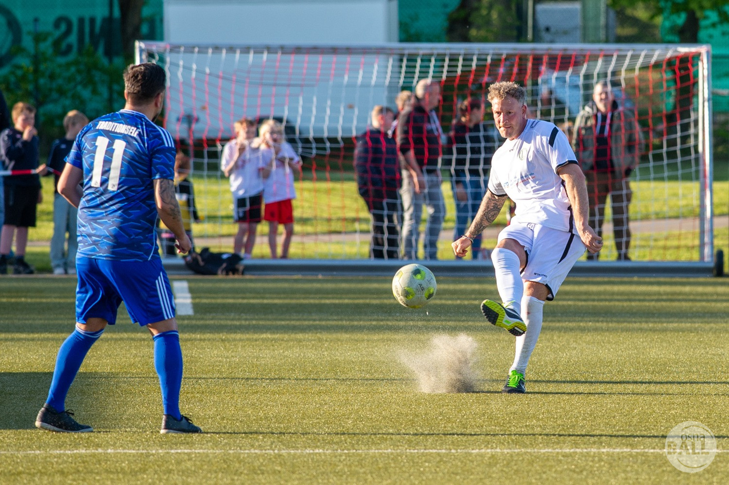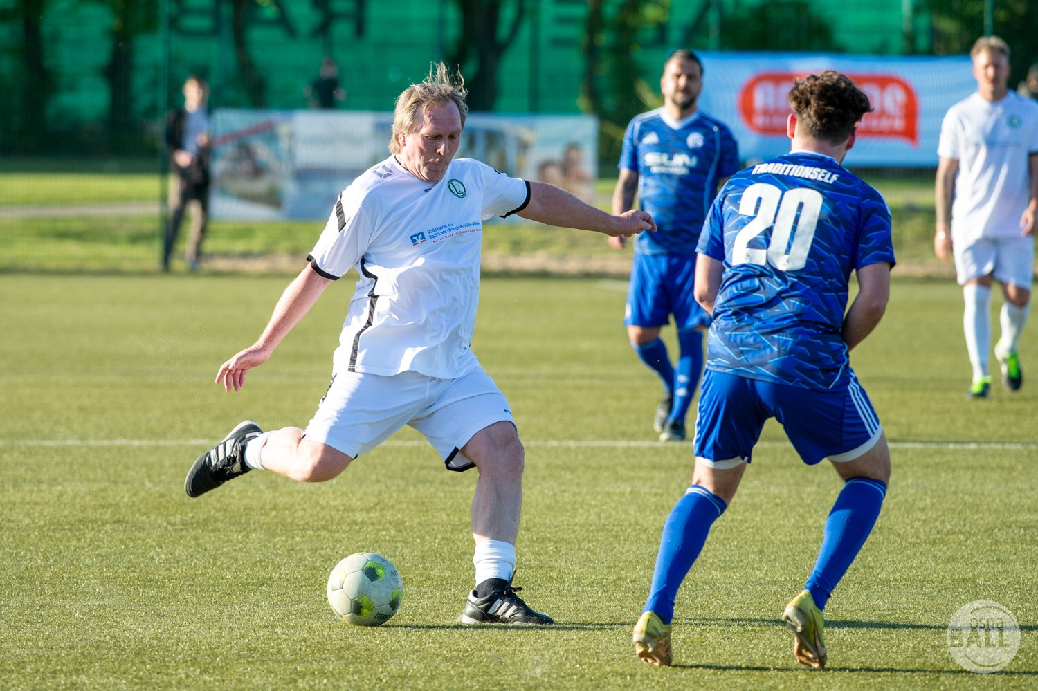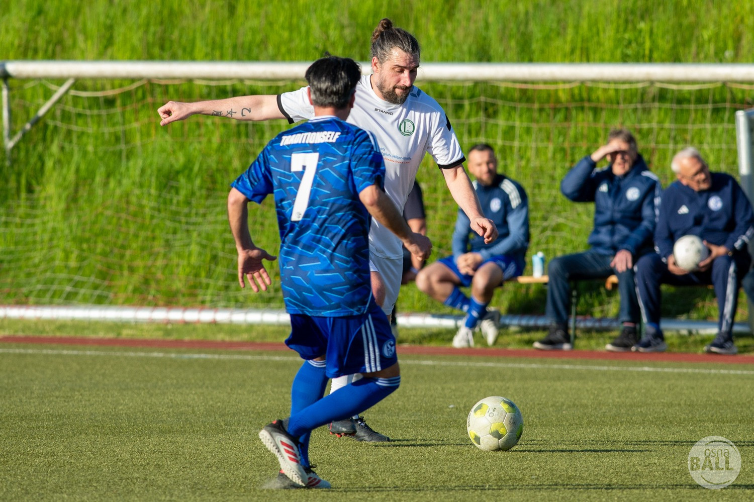 Rund 800 Fußball begeisterte kamen zum vom TuS Hilter und dem Carpesol ausgerichteten Legenden Cup und wurden nicht enttäuscht. Zwar gab es den ein oder anderen Zuschauer der mit einem 1:15 für die Schalker Traditionsmannschaft gerechnet hat, doch das vor allem die Osnabrück Auswahl bzw. Legenden sehr wohl einen guten Ball spielen können, zeigten sie über 2x 40 Minuten. Ein besonderes Augenmerk hatten die Fans auf Ailton geworfen. Was er noch heute am Ball kann, da würden manch gestandene Amateur Fußballer mit der Zunge schnalzen. Aber auch der Weiße Brasilianer in Person von Ansgar Brinkmann zog die Blicke auf sich. Zwar war ein Vollsprint mehr drin, aber einige gute Zweikämpfe und ein hart verwandelter Elfmeter zu 1:1 Ausgleichstreffer. Diesen Elfmeter hatte im übrigen niemand geringeres als Tommy Reichenberger rausgeholt. In klassischer Stürmer Manier wurde er im 16er zu Fall gebracht und der Gegner stritt das Foul nicht ab also Elfmeter. Nach dem Seitenwechsel hatte dann Ailton die zweite Luft und tanzte den ein oder anderen Schalker aus. Sehenswert dabei, sein Führungstreffer zum 2:1. Schalke versuchte in der Folge weiter den Ausgleich zu erzielen, wurde aber immer wieder durch die gut stehende Abwehr der Osnabrück Legenden, gestoppt. Allen voran in Big Nick Manier, niemand geringeres als Tobias Nickenig. Gut 10 Minuten vor dem Ende fiel noch der 3:1 Siegtreffer.