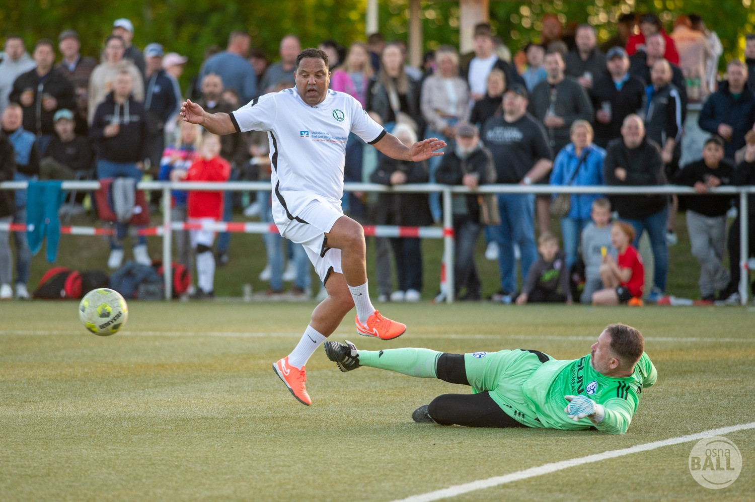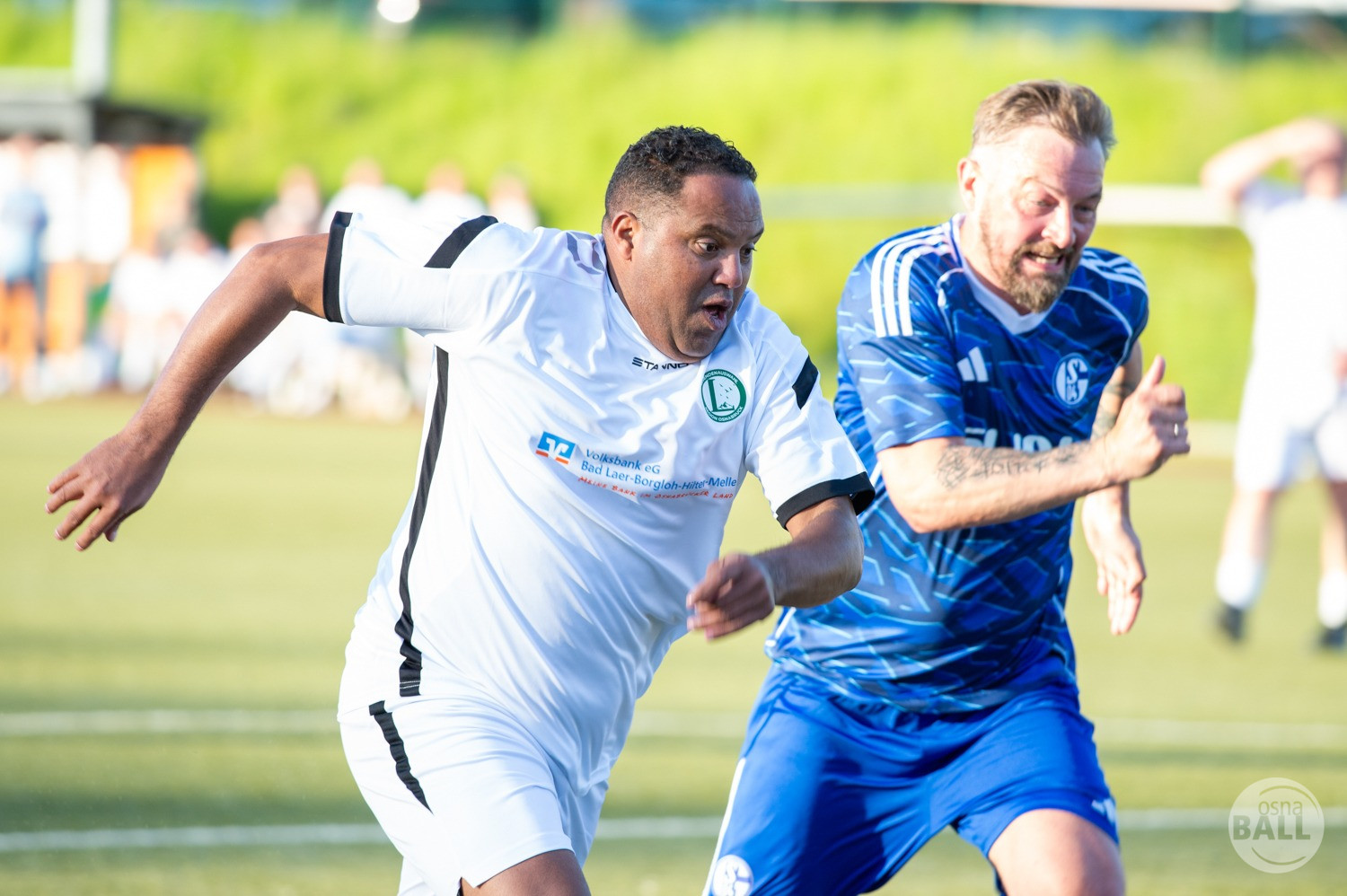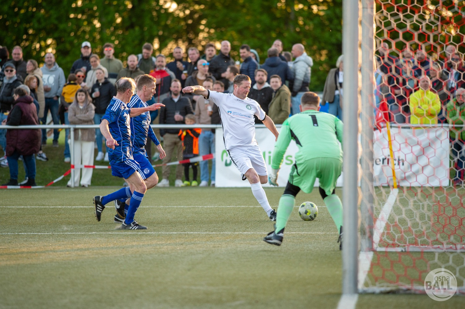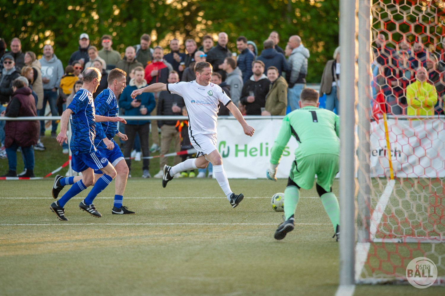 Rund 800 Fußball begeisterte kamen zum vom TuS Hilter und dem Carpesol ausgerichteten Legenden Cup und wurden nicht enttäuscht. Zwar gab es den ein oder anderen Zuschauer der mit einem 1:15 für die Schalker Traditionsmannschaft gerechnet hat, doch das vor allem die Osnabrück Auswahl bzw. Legenden sehr wohl einen guten Ball spielen können, zeigten sie über 2x 40 Minuten. Ein besonderes Augenmerk hatten die Fans auf Ailton geworfen. Was er noch heute am Ball kann, da würden manch gestandene Amateur Fußballer mit der Zunge schnalzen. Aber auch der Weiße Brasilianer in Person von Ansgar Brinkmann zog die Blicke auf sich. Zwar war ein Vollsprint mehr drin, aber einige gute Zweikämpfe und ein hart verwandelter Elfmeter zu 1:1 Ausgleichstreffer. Diesen Elfmeter hatte im übrigen niemand geringeres als Tommy Reichenberger rausgeholt. In klassischer Stürmer Manier wurde er im 16er zu Fall gebracht und der Gegner stritt das Foul nicht ab also Elfmeter. Nach dem Seitenwechsel hatte dann Ailton die zweite Luft und tanzte den ein oder anderen Schalker aus. Sehenswert dabei, sein Führungstreffer zum 2:1. Schalke versuchte in der Folge weiter den Ausgleich zu erzielen, wurde aber immer wieder durch die gut stehende Abwehr der Osnabrück Legenden, gestoppt. Allen voran in Big Nick Manier, niemand geringeres als Tobias Nickenig. Gut 10 Minuten vor dem Ende fiel noch der 3:1 Siegtreffer.