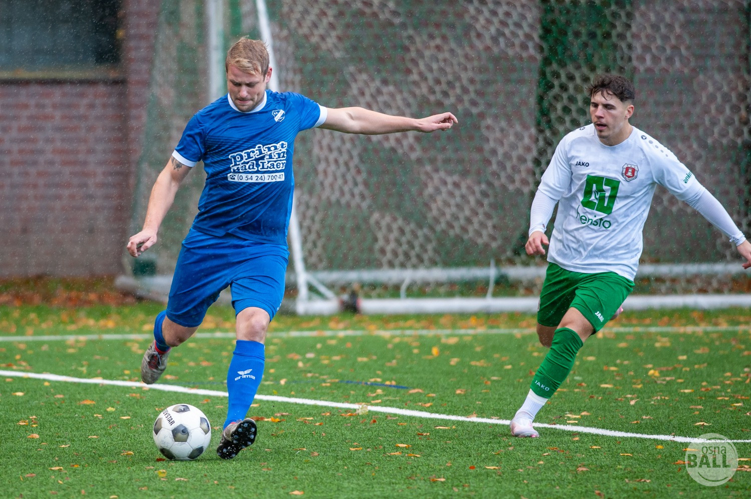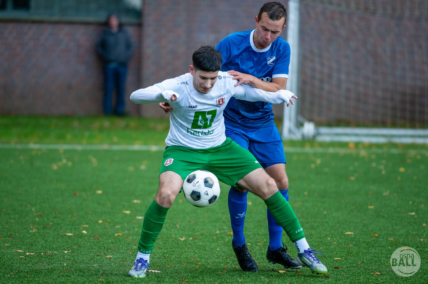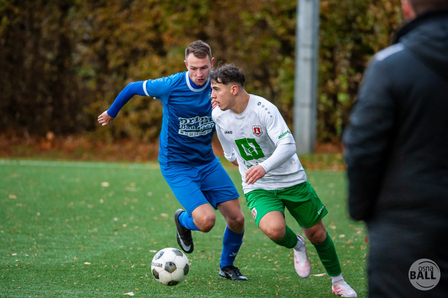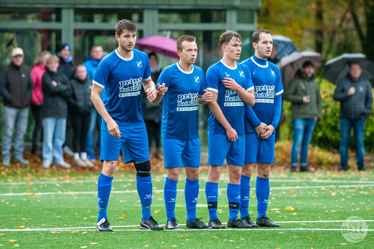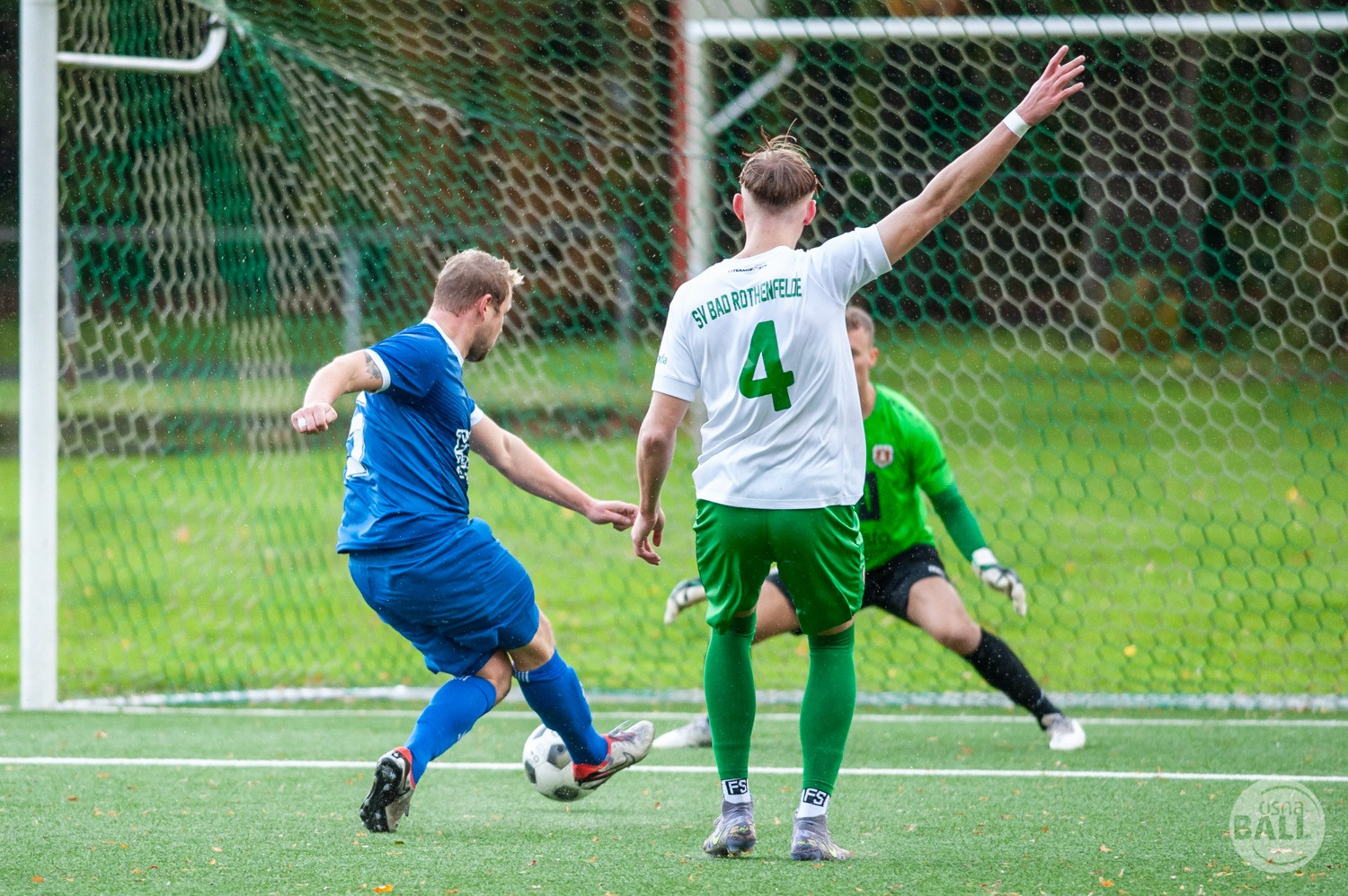 Bad Rothenfelde die in dieser Saison in die Landesliga zurückkehren möchten, tat sich enorm schwer bei den Spielbedingungen. Zwar erspielten sie sich einige Torchancen, doch es war immer ein Bad Laerer Fuß oder Kopf dazwischen. Mehr Spielanteile hatten auf jeden Fall die Gastgeber, doch Bad Laer setzte immer wieder kleine Ausrufezeichen und kam in der 23. Minute durch Tom Derbertshäuser zum Führungstreffer. In den Folgeminuten erhöhte Rothenfelde den Druck, doch wieder war es Bad Laer, die nur 5 Minuten Später durch Nicolas Rinklake mit 0:2 in Führung gingen. SVR Trainer Marco Tredup war sichtlich enttäuscht über das Abwehrverhalten seiner Mannschaft. Es entwickelte sich immer mehr eine offene Partie mit Chancen auf beiden Seiten. In der 38. Minute gelang Rothenfelde dann der Anschlusstreffer. In Folge waren sie nun deutlich aggressiver und drückten auf den Ausgleich.