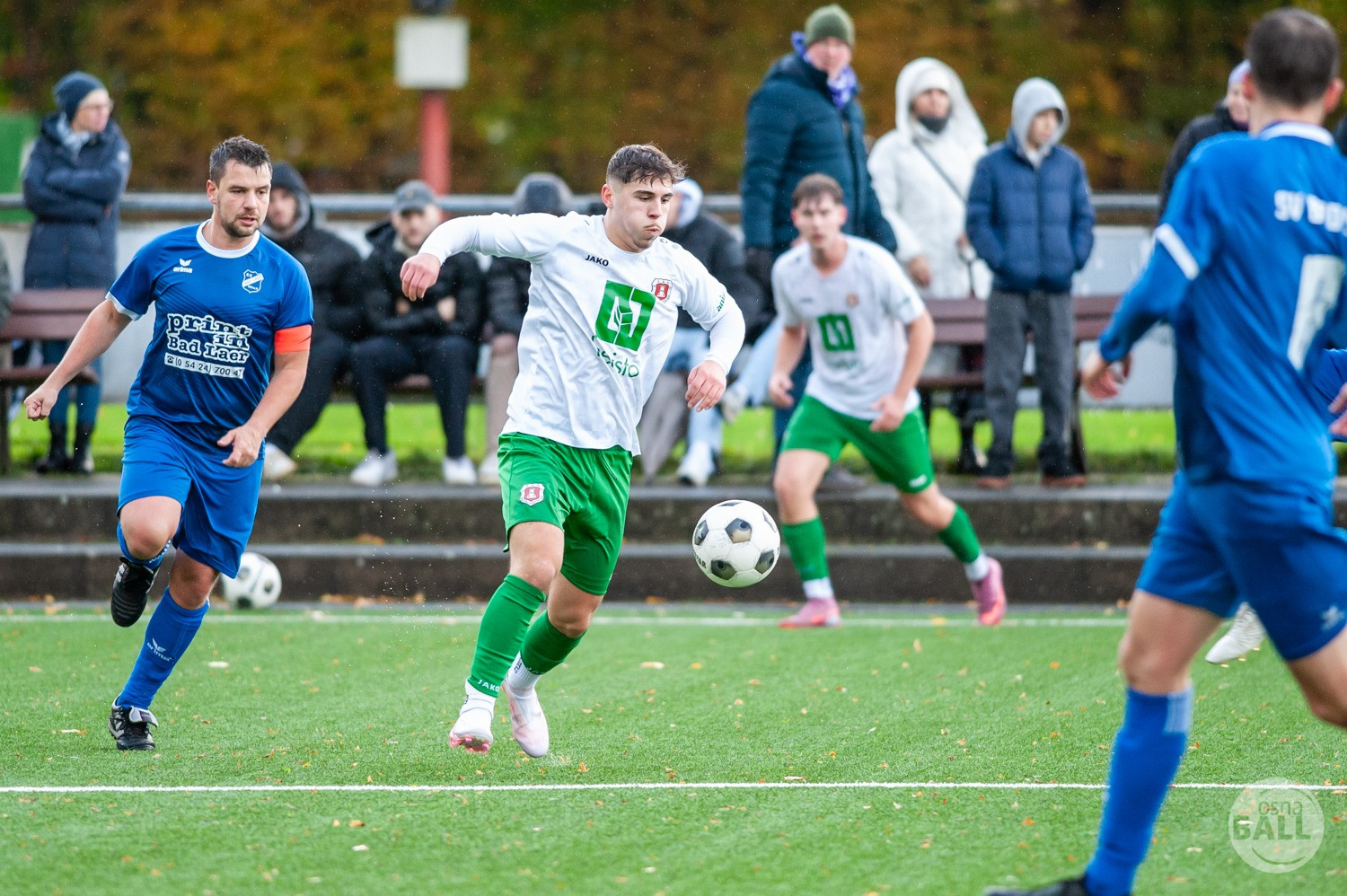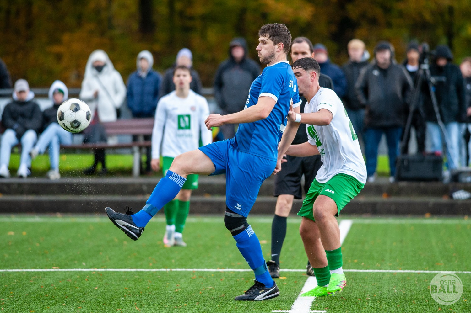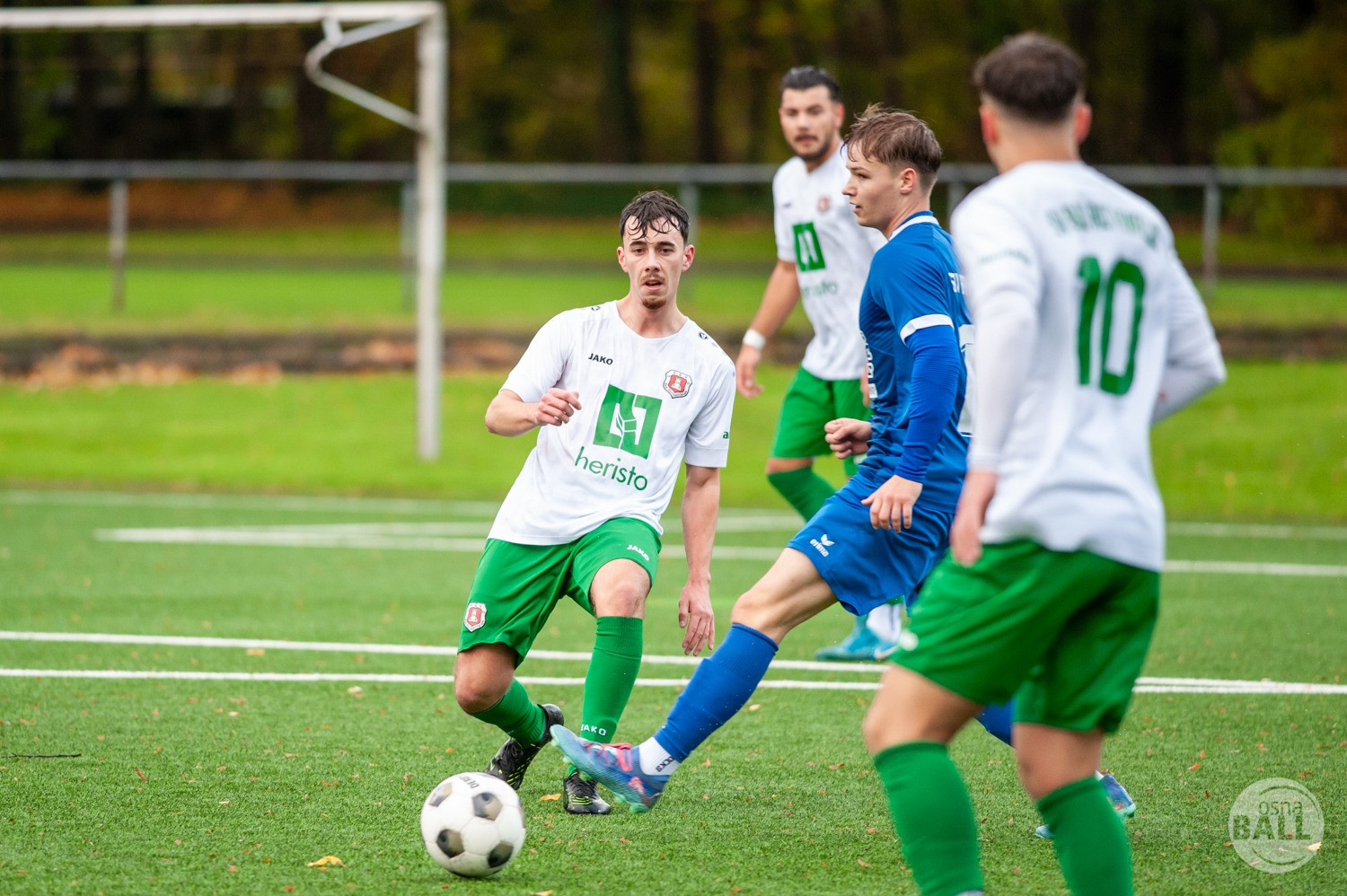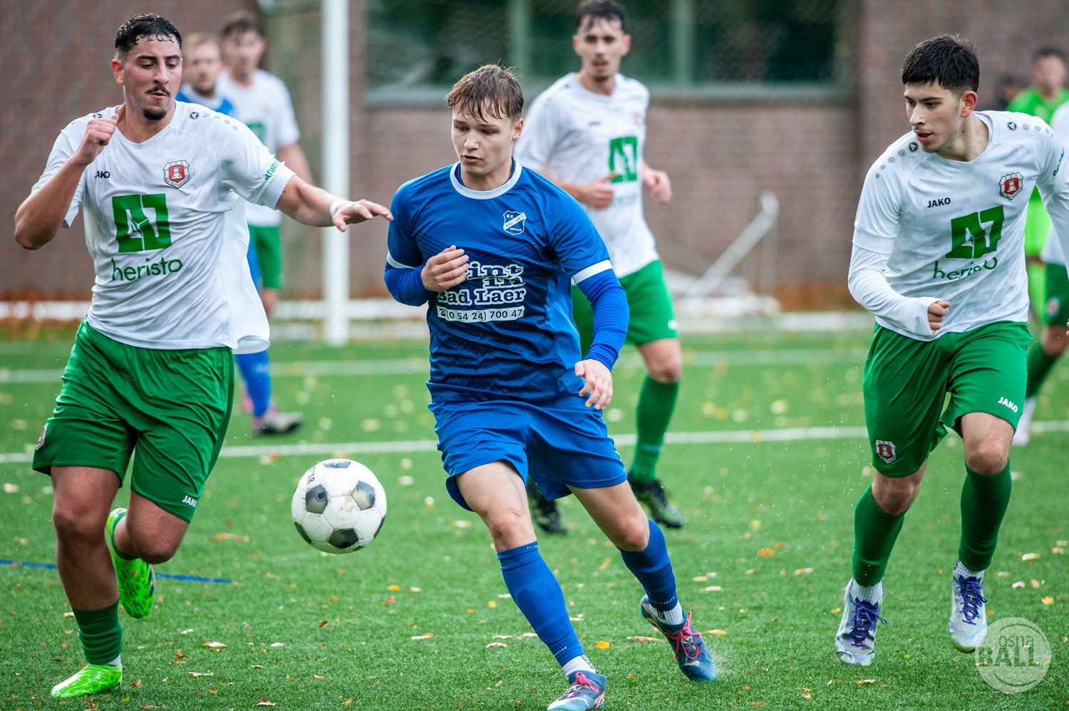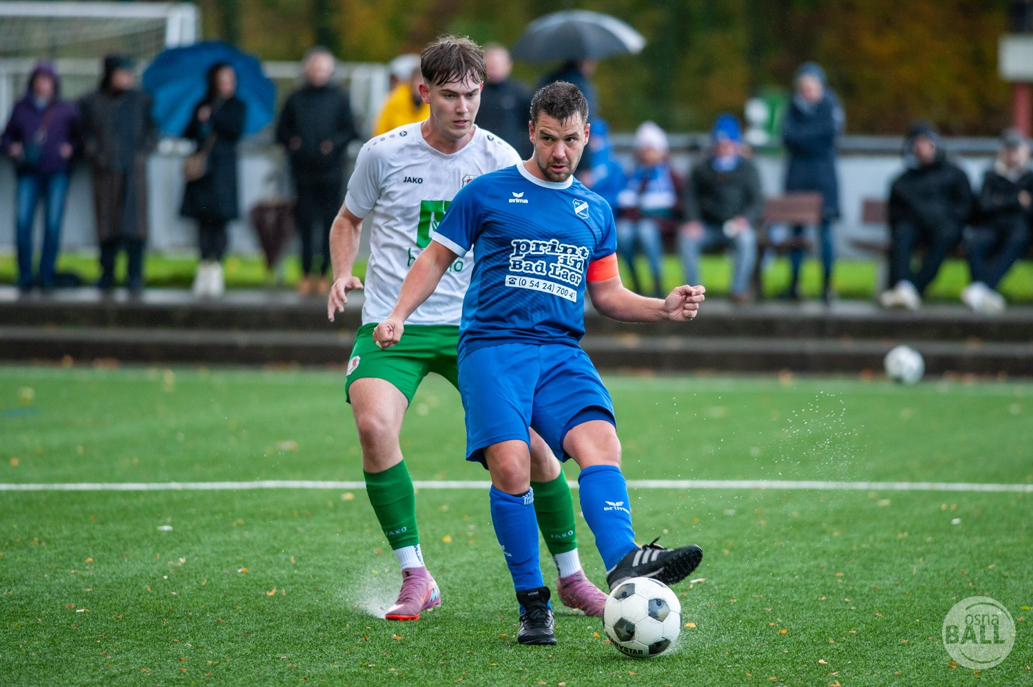 Bad Rothenfelde die in dieser Saison in die Landesliga zurückkehren möchten, tat sich enorm schwer bei den Spielbedingungen. Zwar erspielten sie sich einige Torchancen, doch es war immer ein Bad Laerer Fuß oder Kopf dazwischen. Mehr Spielanteile hatten auf jeden Fall die Gastgeber, doch Bad Laer setzte immer wieder kleine Ausrufezeichen und kam in der 23. Minute durch Tom Derbertshäuser zum Führungstreffer. In den Folgeminuten erhöhte Rothenfelde den Druck, doch wieder war es Bad Laer, die nur 5 Minuten Später durch Nicolas Rinklake mit 0:2 in Führung gingen. SVR Trainer Marco Tredup war sichtlich enttäuscht über das Abwehrverhalten seiner Mannschaft. Es entwickelte sich immer mehr eine offene Partie mit Chancen auf beiden Seiten. In der 38. Minute gelang Rothenfelde dann der Anschlusstreffer. In Folge waren sie nun deutlich aggressiver und drückten auf den Ausgleich.