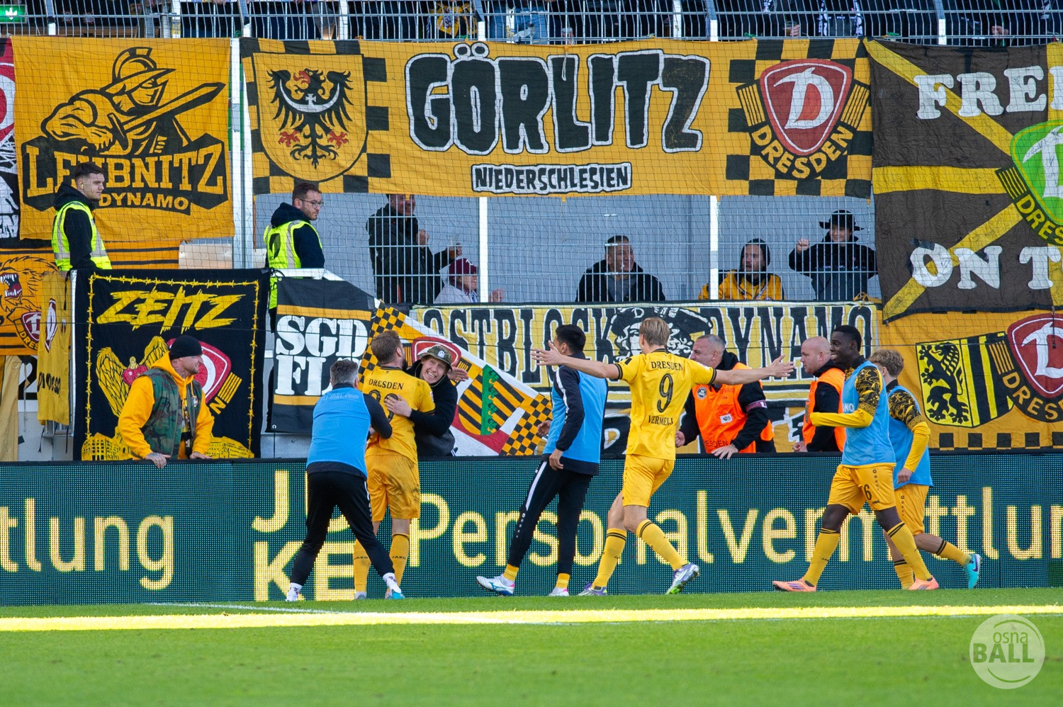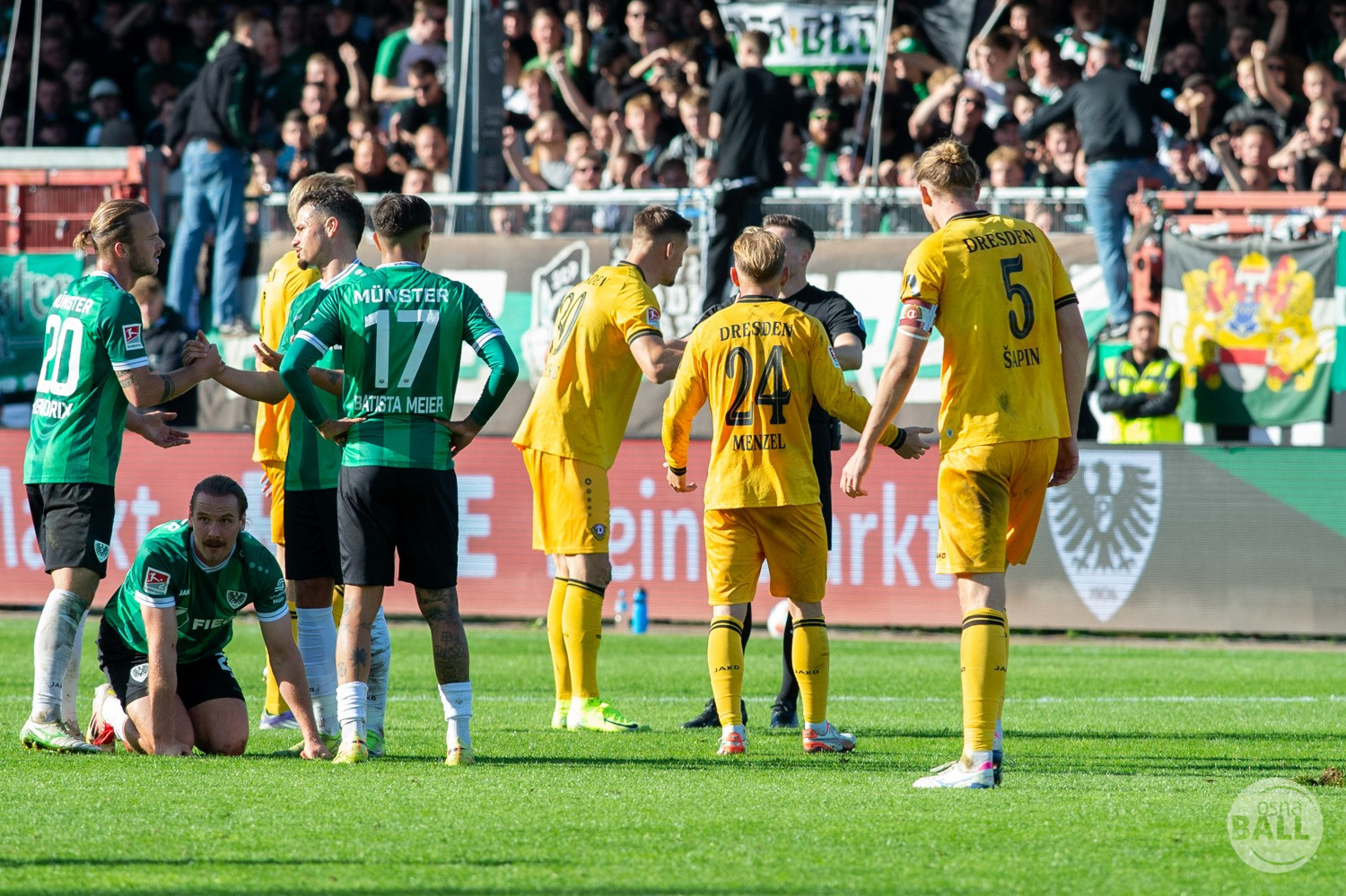 Preußen Trainer Ende schien in der Kabine die passenden Worte gefunden zu haben, denn seine Mannschaft kam druckvoll zurück. Besonders über die Mitte gab es eine folge schneller Torchancen, von denen Hendrix in der 51. Minute eine versenkte. Nun entwickelte sich ein offener Schlagabtausch. Dresden fand langsam besser zurück ins die Partie und drängte auf die erneute Führung. In der 70. Minute wieder nach Vorarbeit von Rossipal, erzielte Bünning die erneute Führung für Dresden. Nun nichts mehr anbrennen lassen, schien die Devise von Dresden zu sein, aber Münster wollte sich mit einer Niederlage nicht abfinden. Das dann ausgerechnet Bünning mit einem Eigentor für das 2:2 sorgte, war für Dresden ein Schlag ins Gesicht. In der 92. Minute kam dann Dresden Ikone Kutschke ins Spiel. Er sollte noch mal versuchen die ein oder andere Chance für Dresden zu generieren. Allerdings musste er nach hartem Einsteigen in der 97. Minute mit Rot wieder vom Feld. Als er das Feld verlies, skandierten die Münster Fans Lautstark "Nazis raus".