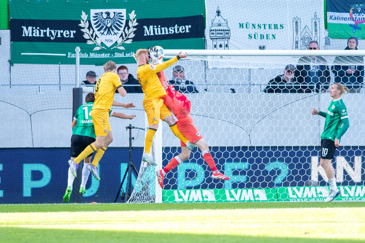 SC Preußen Münster gegen SG Dynamo Dresden. Schaut man auf die Tabelle, so ist es aktuell kein Spitzenspiel, aber mit lautstarker Unterstützung beider Fanlager. Gut 1.800 Dynamo Anhänger haben sich mit auf den weg nach Münster gemacht, dafür bekannt, für mächtig Stimmung im Stadion zu sorgen. Gleiches gilt aber auch für Münster. Spielerisch war die Partie jedoch nicht so packend, wie es sich beide Seiten im Vorfeld gewünscht haben. Sowohl Münster als auch Dresden sind nicht dafür bekannt mit Angriffsfußball zu glänzen, dafür fehlen die wirklichen Knipser.