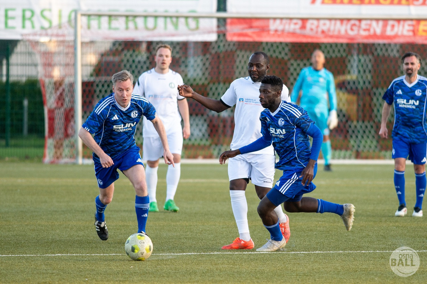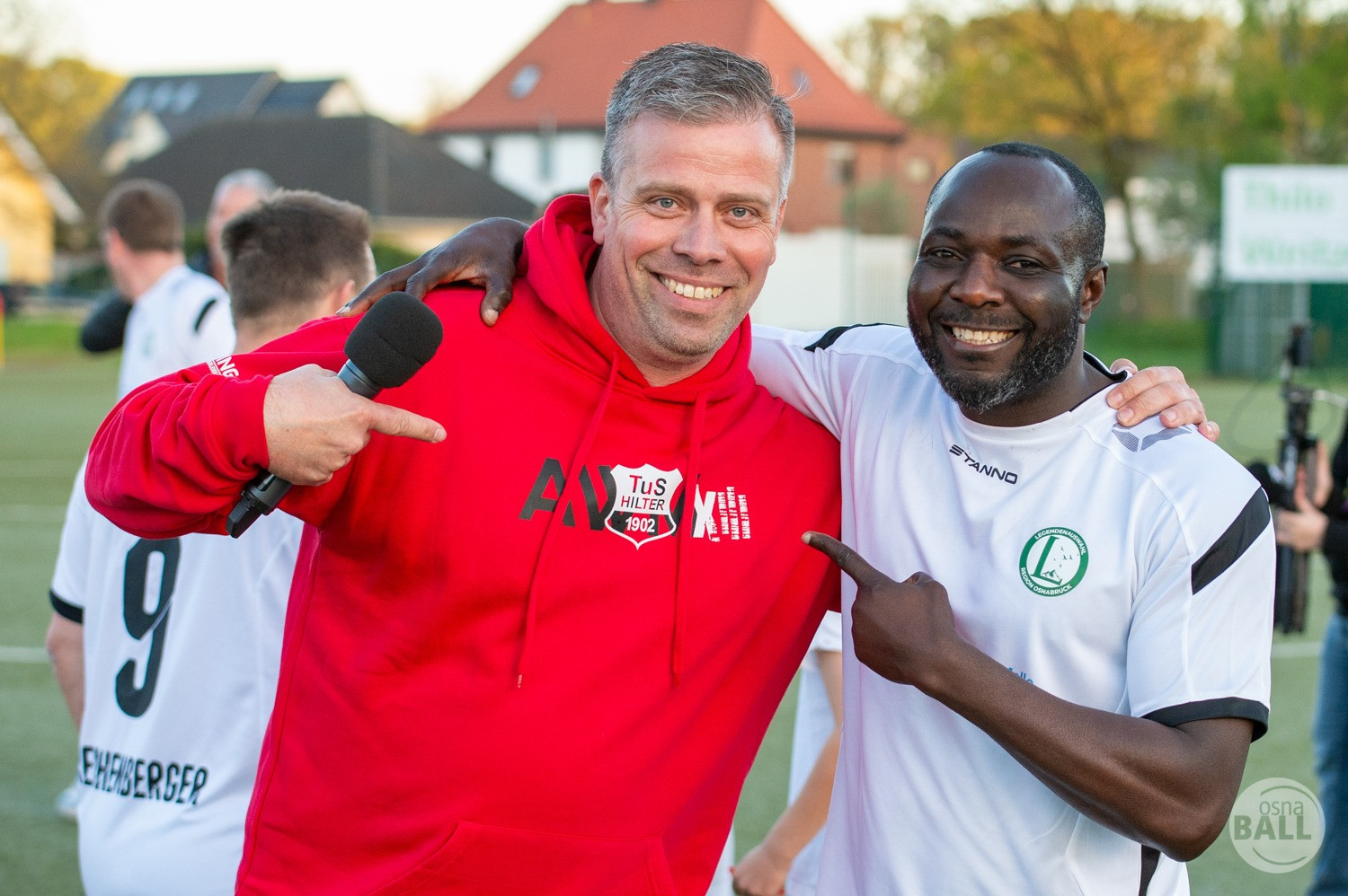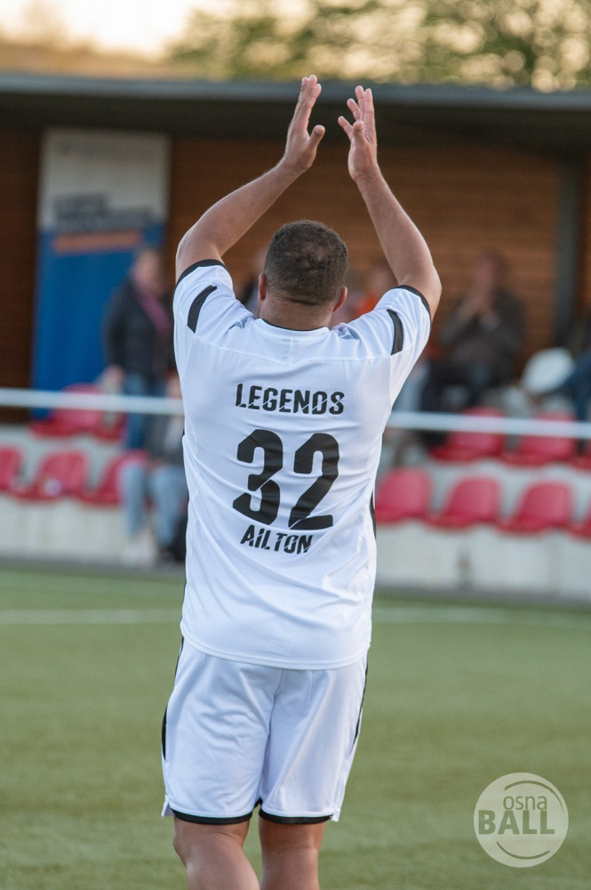 Rund 800 Fußball begeisterte kamen zum vom TuS Hilter und dem Carpesol ausgerichteten Legenden Cup und wurden nicht enttäuscht. Zwar gab es den ein oder anderen Zuschauer der mit einem 1:15 für die Schalker Traditionsmannschaft gerechnet hat, doch das vor allem die Osnabrück Auswahl bzw. Legenden sehr wohl einen guten Ball spielen können, zeigten sie über 2x 40 Minuten. Ein besonderes Augenmerk hatten die Fans auf Ailton geworfen. Was er noch heute am Ball kann, da würden manch gestandene Amateur Fußballer mit der Zunge schnalzen. Aber auch der Weiße Brasilianer in Person von Ansgar Brinkmann zog die Blicke auf sich. Zwar war ein Vollsprint mehr drin, aber einige gute Zweikämpfe und ein hart verwandelter Elfmeter zu 1:1 Ausgleichstreffer. Diesen Elfmeter hatte im übrigen niemand geringeres als Tommy Reichenberger rausgeholt. In klassischer Stürmer Manier wurde er im 16er zu Fall gebracht und der Gegner stritt das Foul nicht ab also Elfmeter. Nach dem Seitenwechsel hatte dann Ailton die zweite Luft und tanzte den ein oder anderen Schalker aus. Sehenswert dabei, sein Führungstreffer zum 2:1. Schalke versuchte in der Folge weiter den Ausgleich zu erzielen, wurde aber immer wieder durch die gut stehende Abwehr der Osnabrück Legenden, gestoppt. Allen voran in Big Nick Manier, niemand geringeres als Tobias Nickenig. Gut 10 Minuten vor dem Ende fiel noch der 3:1 Siegtreffer.