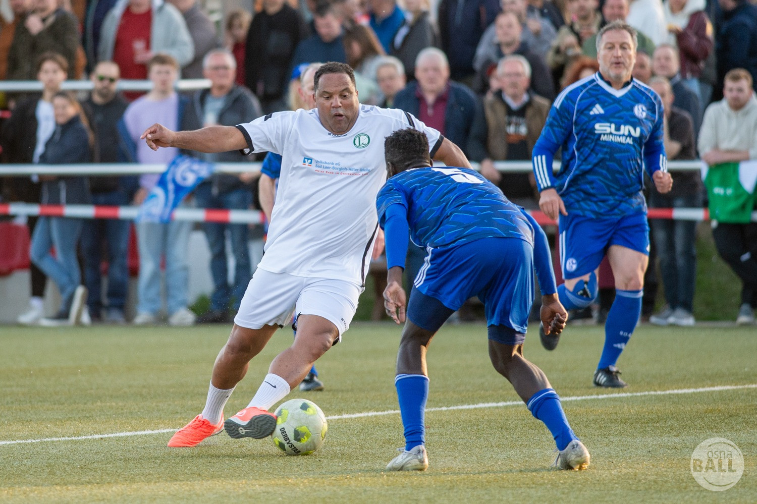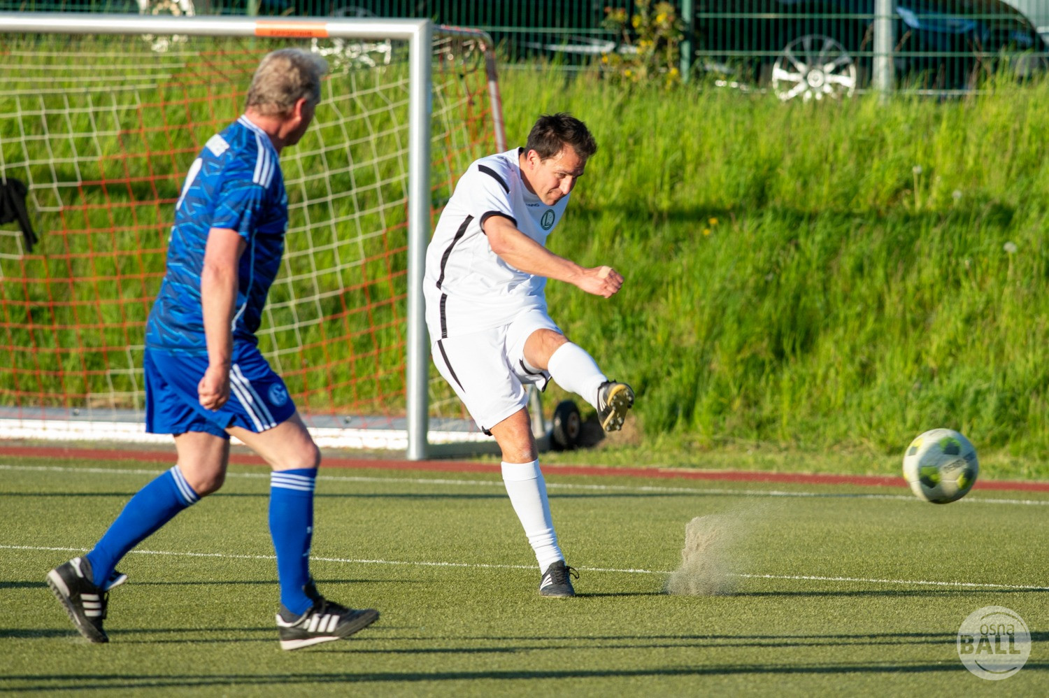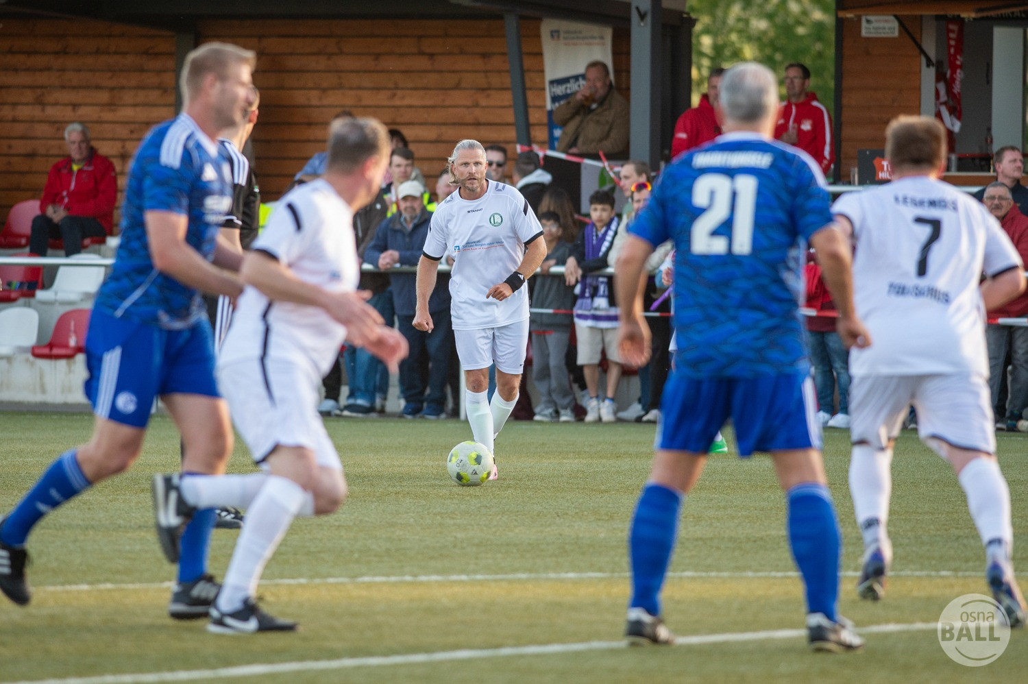Rund 800 Fußball begeisterte kamen zum vom TuS Hilter und dem Carpesol ausgerichteten Legenden Cup und wurden nicht enttäuscht. Zwar gab es den ein oder anderen Zuschauer der mit einem 1:15 für die Schalker Traditionsmannschaft gerechnet hat, doch das vor allem die Osnabrück Auswahl bzw. Legenden sehr wohl einen guten Ball spielen können, zeigten sie über 2x 40 Minuten. Ein besonderes Augenmerk hatten die Fans auf Ailton geworfen. Was er noch heute am Ball kann, da würden manch gestandene Amateur Fußballer mit der Zunge schnalzen. Aber auch der Weiße Brasilianer in Person von Ansgar Brinkmann zog die Blicke auf sich. Zwar war ein Vollsprint mehr drin, aber einige gute Zweikämpfe und ein hart verwandelter Elfmeter zu 1:1 Ausgleichstreffer. Diesen Elfmeter hatte im übrigen niemand geringeres als Tommy Reichenberger rausgeholt. In klassischer Stürmer Manier wurde er im 16er zu Fall gebracht und der Gegner stritt das Foul nicht ab also Elfmeter. Nach dem Seitenwechsel hatte dann Ailton die zweite Luft und tanzte den ein oder anderen Schalker aus. Sehenswert dabei, sein Führungstreffer zum 2:1. Schalke versuchte in der Folge weiter den Ausgleich zu erzielen, wurde aber immer wieder durch die gut stehende Abwehr der Osnabrück Legenden, gestoppt. Allen voran in Big Nick Manier, niemand geringeres als Tobias Nickenig. Gut 10 Minuten vor dem Ende fiel noch der 3:1 Siegtreffer.