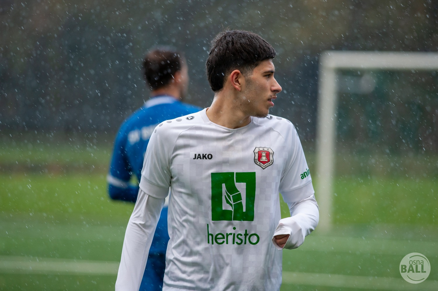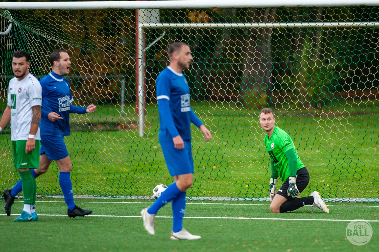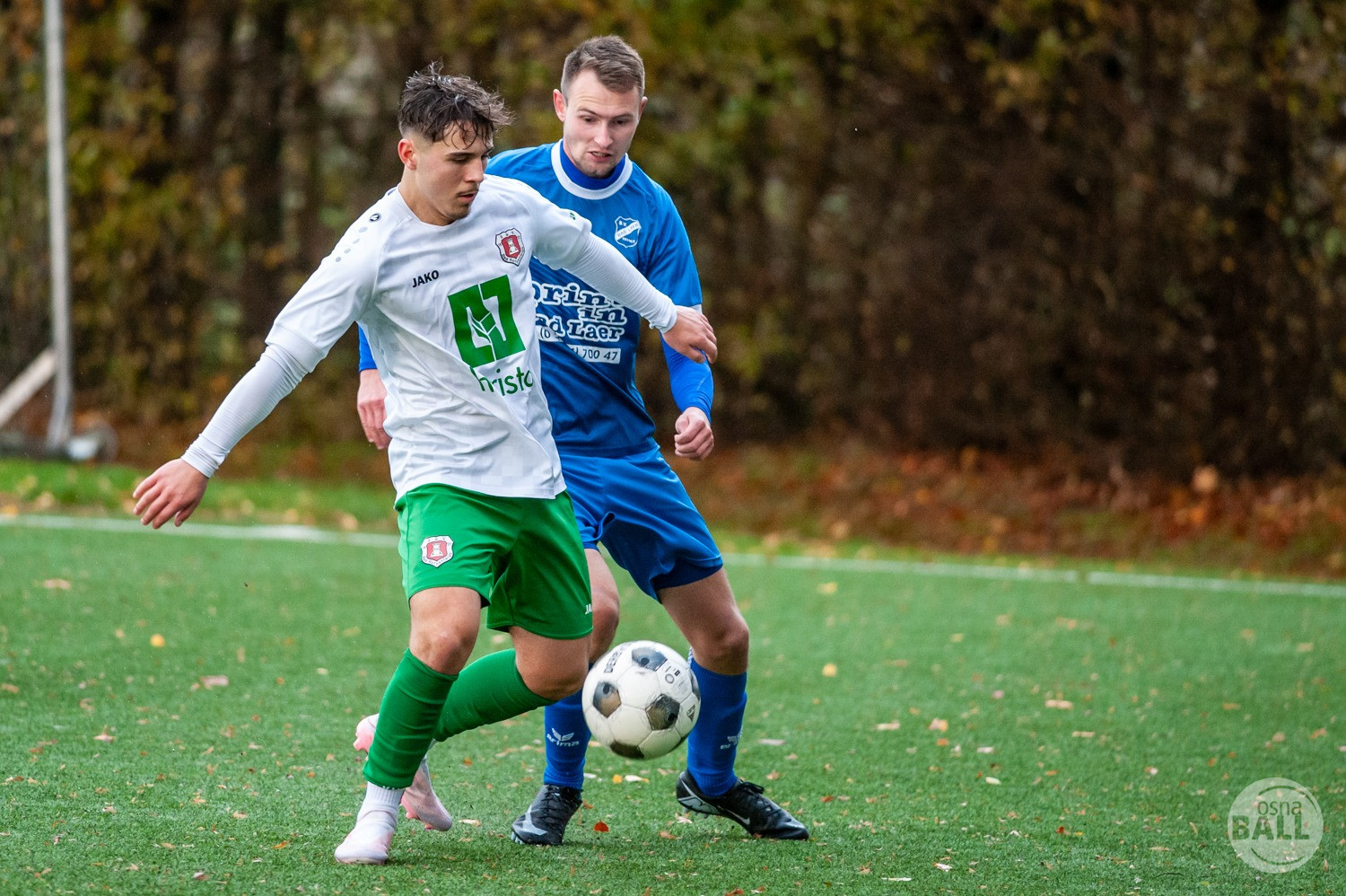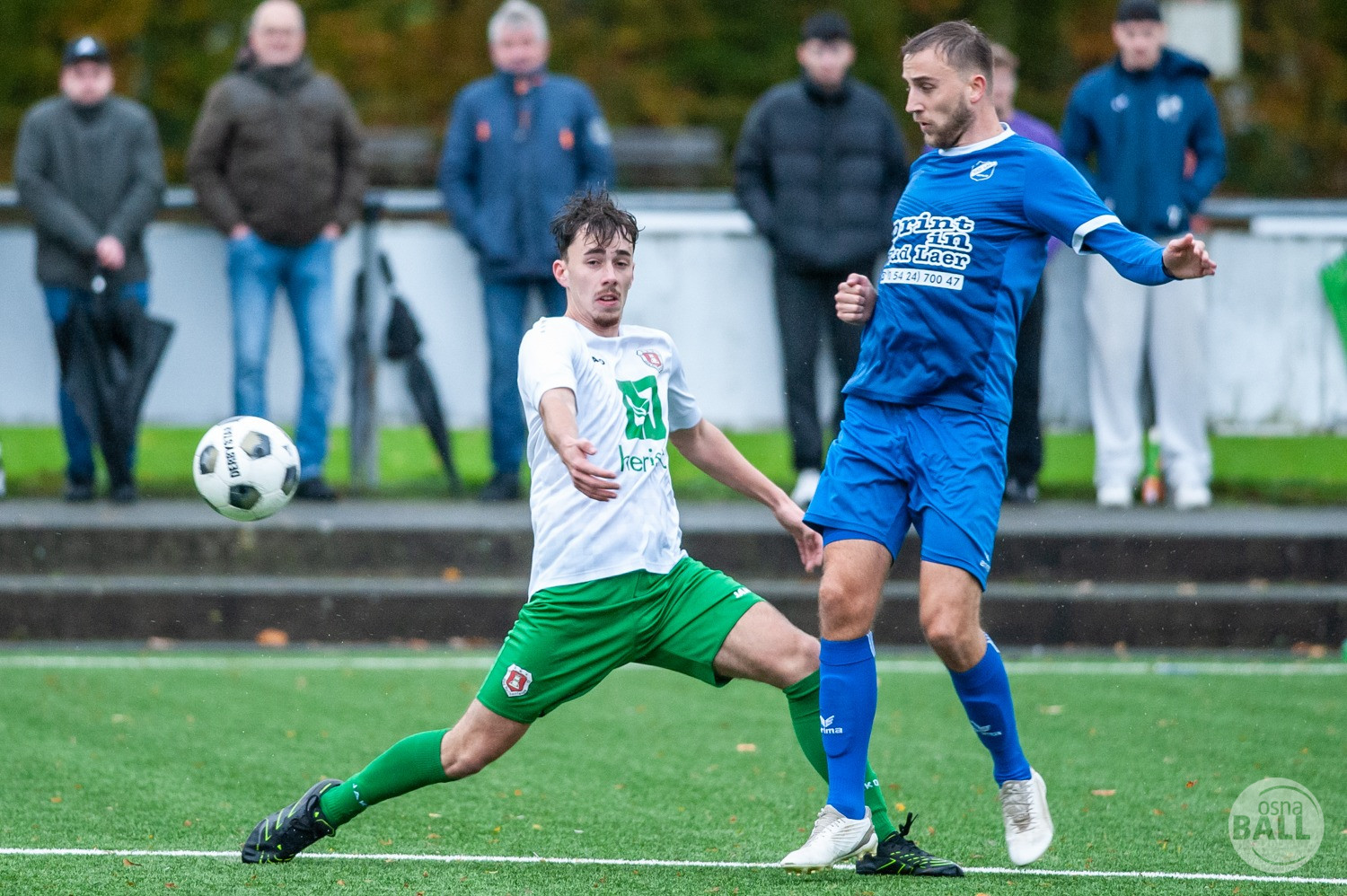 Bad Rothenfelde die in dieser Saison in die Landesliga zurückkehren möchten, tat sich enorm schwer bei den Spielbedingungen. Zwar erspielten sie sich einige Torchancen, doch es war immer ein Bad Laerer Fuß oder Kopf dazwischen. Mehr Spielanteile hatten auf jeden Fall die Gastgeber, doch Bad Laer setzte immer wieder kleine Ausrufezeichen und kam in der 23. Minute durch Tom Derbertshäuser zum Führungstreffer. In den Folgeminuten erhöhte Rothenfelde den Druck, doch wieder war es Bad Laer, die nur 5 Minuten Später durch Nicolas Rinklake mit 0:2 in Führung gingen. SVR Trainer Marco Tredup war sichtlich enttäuscht über das Abwehrverhalten seiner Mannschaft. Es entwickelte sich immer mehr eine offene Partie mit Chancen auf beiden Seiten. In der 38. Minute gelang Rothenfelde dann der Anschlusstreffer. In Folge waren sie nun deutlich aggressiver und drückten auf den Ausgleich.