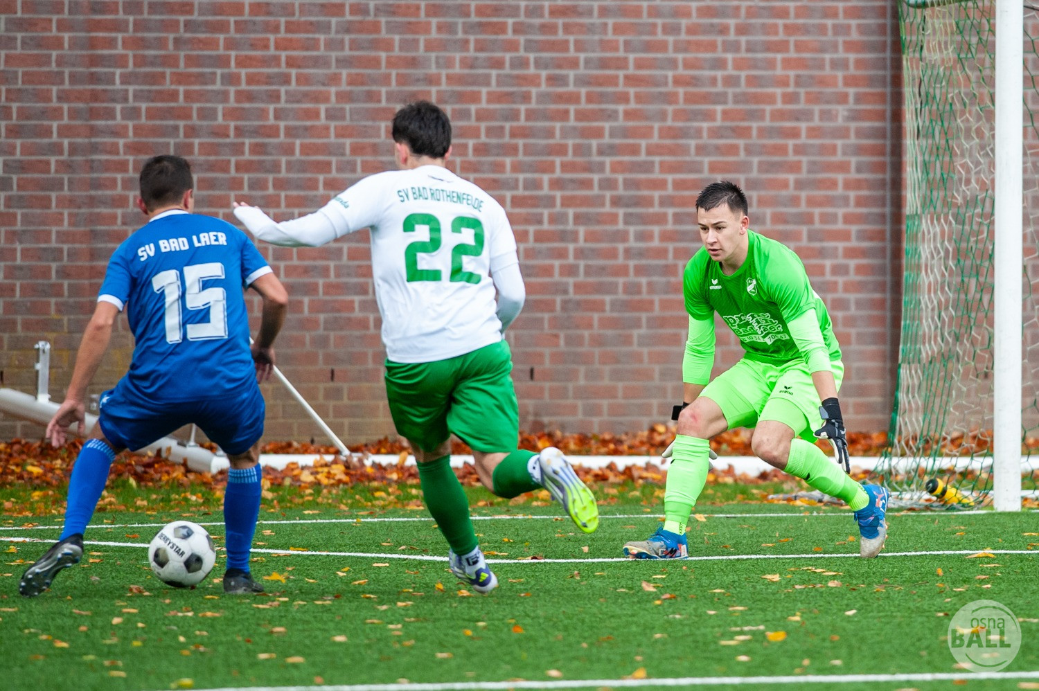 Beide Teams wechselten in der Pause. Für Bad Laer, die gern Frühzeitig die Klasse sichern wollen, stand Sicherung auf der Tagesordnung. Das sie vor allem in solchen Spielen immer wieder zeigen, das man jederzeit mit ihnen rechnen muss, beeindruckte den Gastgeber nicht besonders. Rothenfelde kam mit deutlich mehr Schwung aus der Kabine und wollte den Bock hier noch umstoßen. Immer und immer wieder kamen sie zu gefährlichen Abschlüssen, doch wie schon in der ersten Hälfte, schmiss sich immer einer dazwischen. Der Ball wollte an diesem Tag nicht mehr über die Linie für Bad Rothenfelde. Nur Bad Laer setzte in der 78. Minute wieder durch Tom Debertshäuser den Schlusspunkt zum 1:3 Endstand.