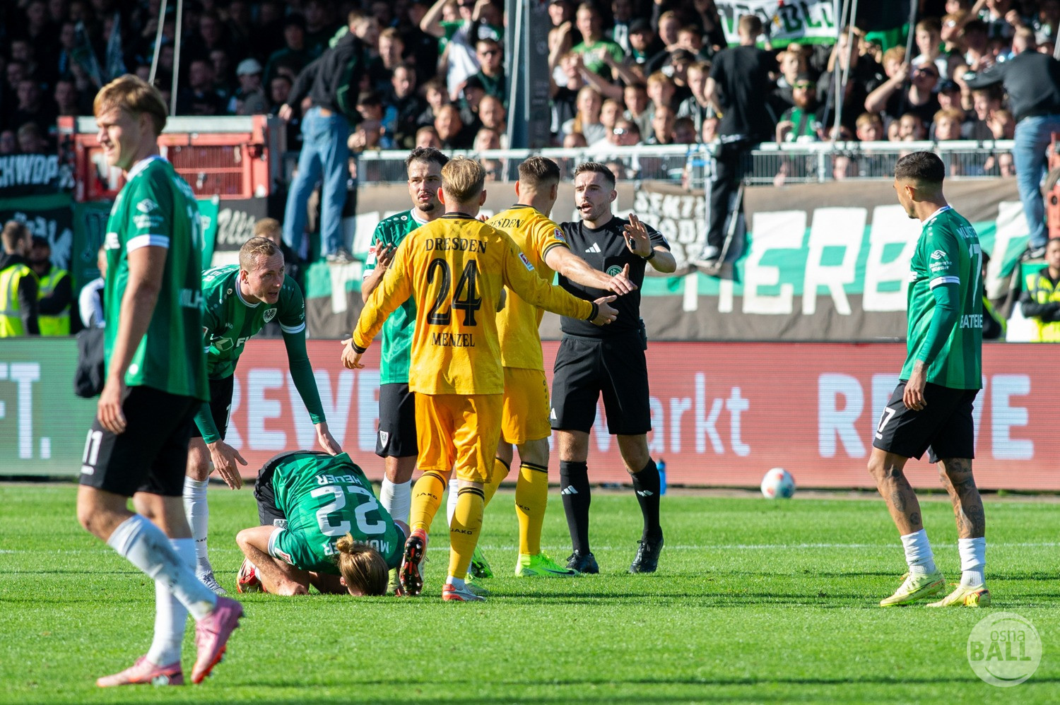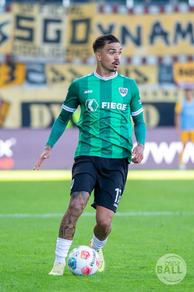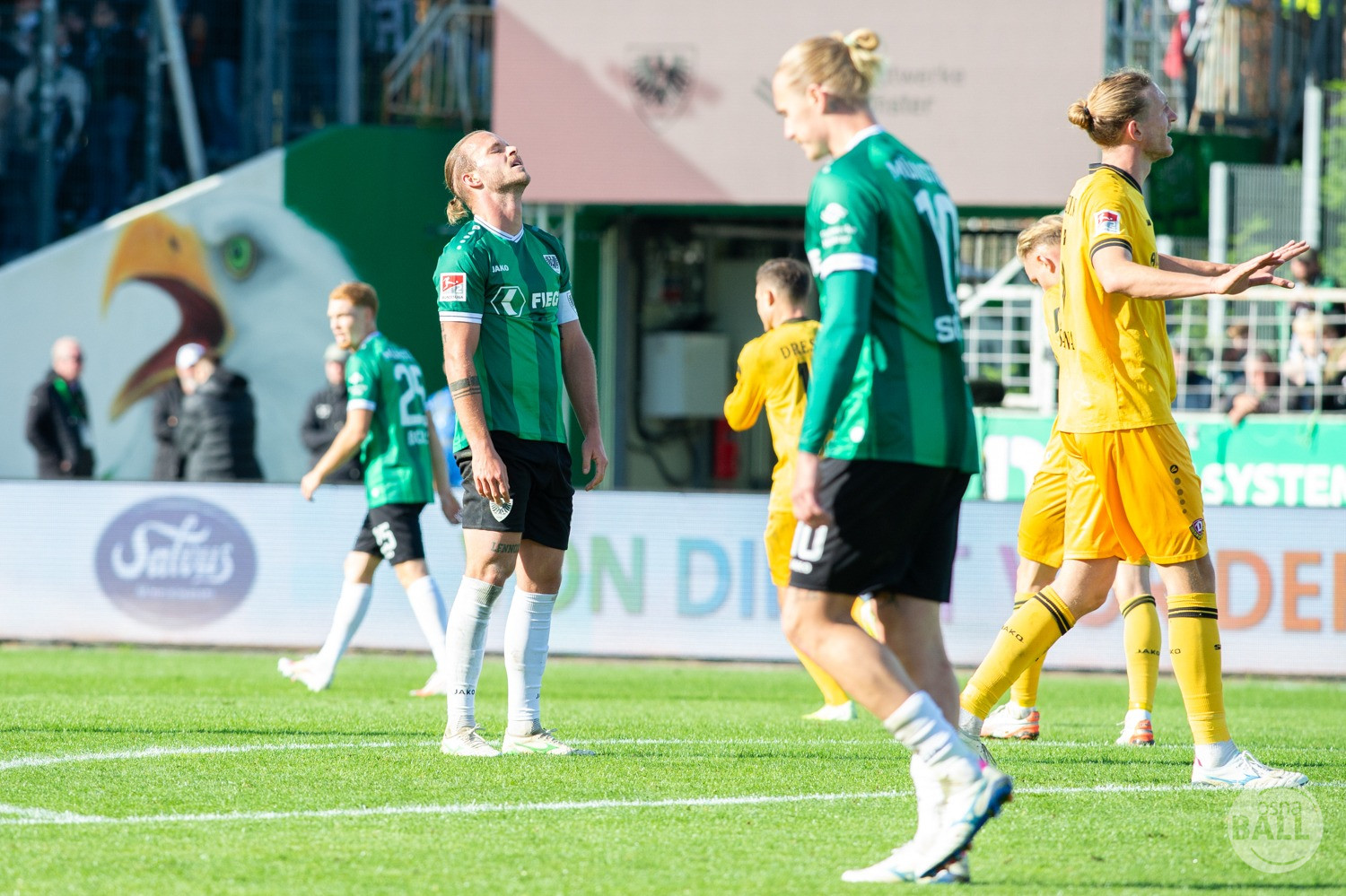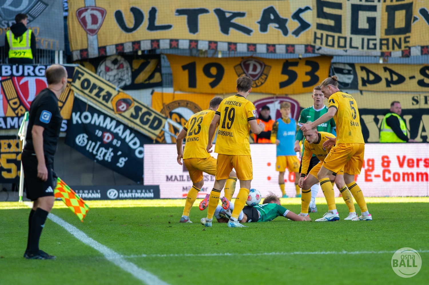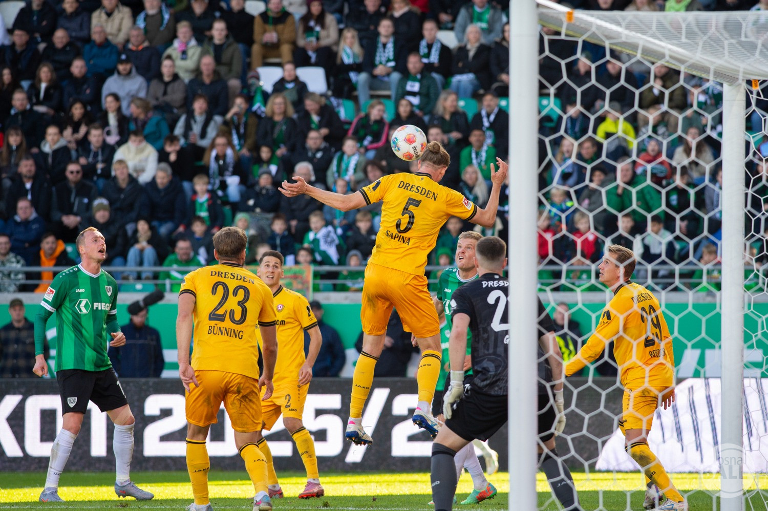Nach einer kurzen Phase der Abtastung, hatte Münster die ein oder andere Chance, doch vor dem Tor war Dresden gefährlicher. Es war nur eine Frage der Zeit bis ein Tor fallen würde. In der 23. Minute drehte Rossipal einen Freistoß direkt ins Tor und brachte Dresden mit 0:1 in Führung. Münster war nach dem Gegentor sehr bemüht, schnell den Ausgleich zu erzielen, scheiterte aber am guten Dresden Keeper. Preußen Trainer Alexander Ende war am Spielfeldrand ebenfalls sichtlich bemüht seine Jungs nach vor zu dirigieren. Bis zur Pause spielte sich fast alles im Mittelfeld ab, daher ging es mit der knappen Führung für Dresden in die Pause.