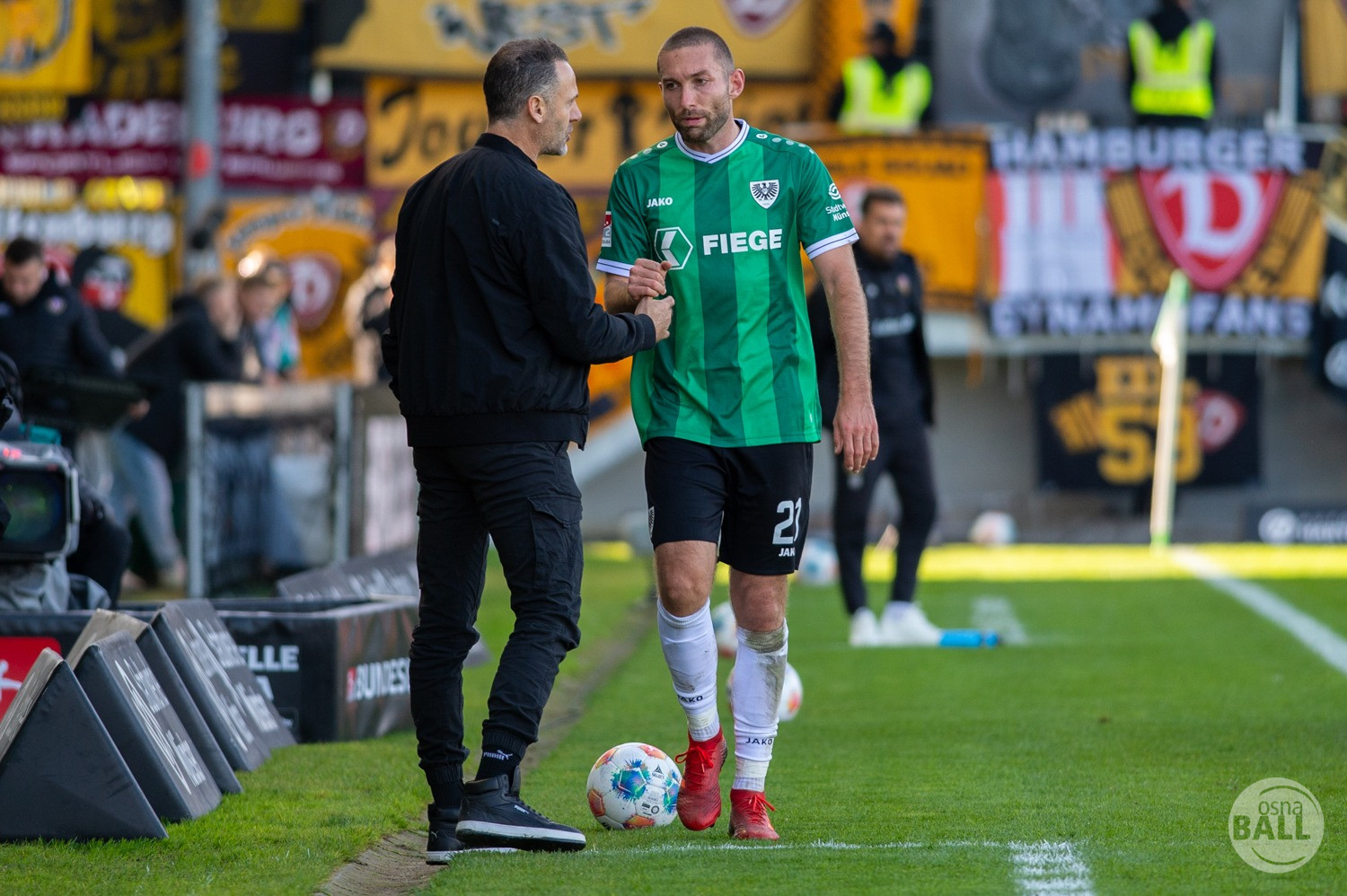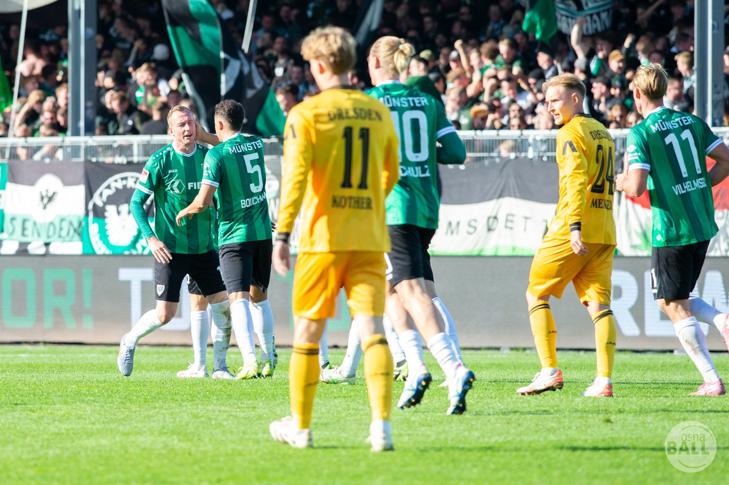 Preußen Trainer Ende schien in der Kabine die passenden Worte gefunden zu haben, denn seine Mannschaft kam druckvoll zurück. Besonders über die Mitte gab es eine folge schneller Torchancen, von denen Hendrix in der 51. Minute eine versenkte. Nun entwickelte sich ein offener Schlagabtausch. Dresden fand langsam besser zurück ins die Partie und drängte auf die erneute Führung. In der 70. Minute wieder nach Vorarbeit von Rossipal, erzielte Bünning die erneute Führung für Dresden. Nun nichts mehr anbrennen lassen, schien die Devise von Dresden zu sein, aber Münster wollte sich mit einer Niederlage nicht abfinden. Das dann ausgerechnet Bünning mit einem Eigentor für das 2:2 sorgte, war für Dresden ein Schlag ins Gesicht. In der 92. Minute kam dann Dresden Ikone Kutschke ins Spiel. Er sollte noch mal versuchen die ein oder andere Chance für Dresden zu generieren. Allerdings musste er nach hartem Einsteigen in der 97. Minute mit Rot wieder vom Feld. Als er das Feld verlies, skandierten die Münster Fans Lautstark "Nazis raus".